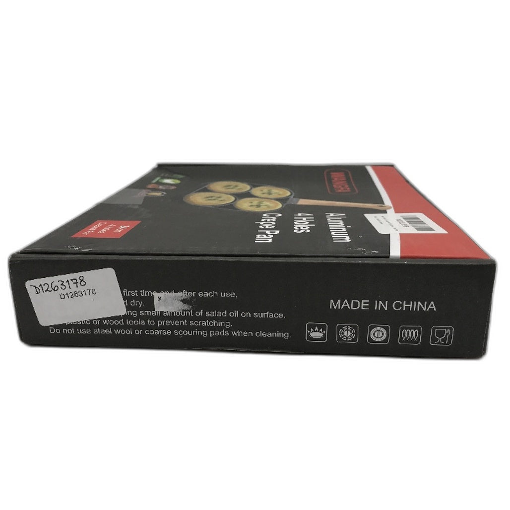 - Aluminium 4 Hole Crepe Frying Pan Multipurpose Cookware Wooden Handle Non-Stick