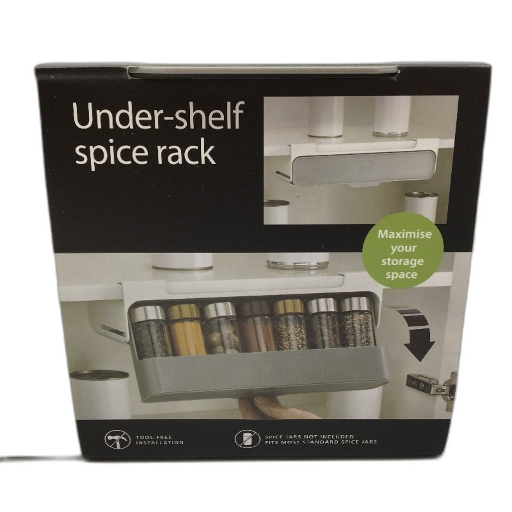 - Ezonedeal White Grey Under Shelf Cabinet Spice Rack 32cm NEW