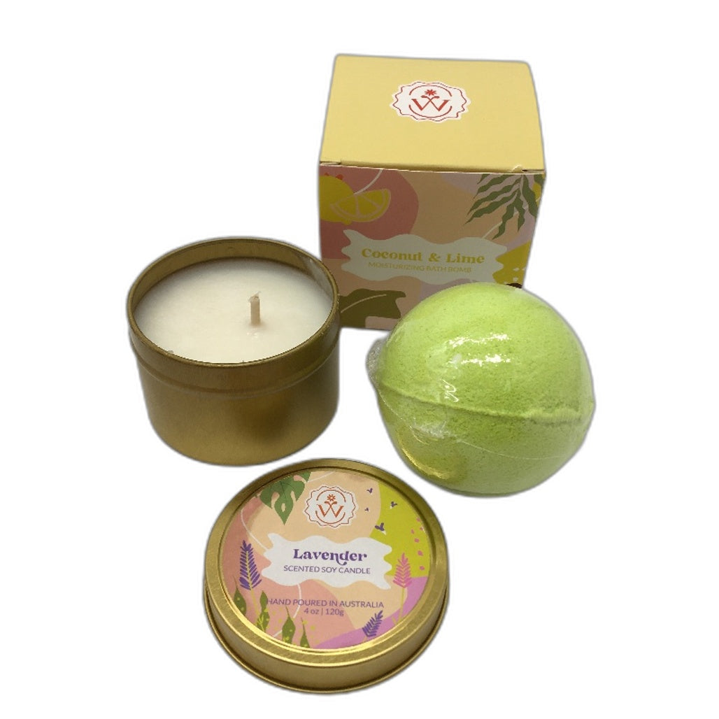 - Wick & Wish Spa Gift Box Scented Candle Goat Milk Soap Bath Bomb NEW