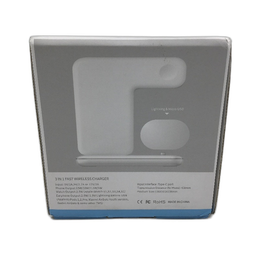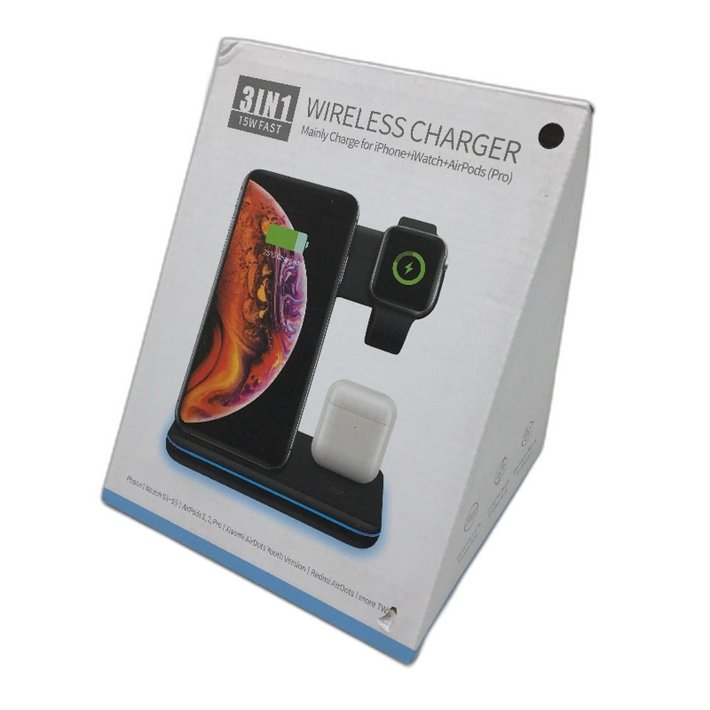 - Wireless 15W 3 In 1 Fast Charger Blk Charging Station Lightning iPhone Apple Watch