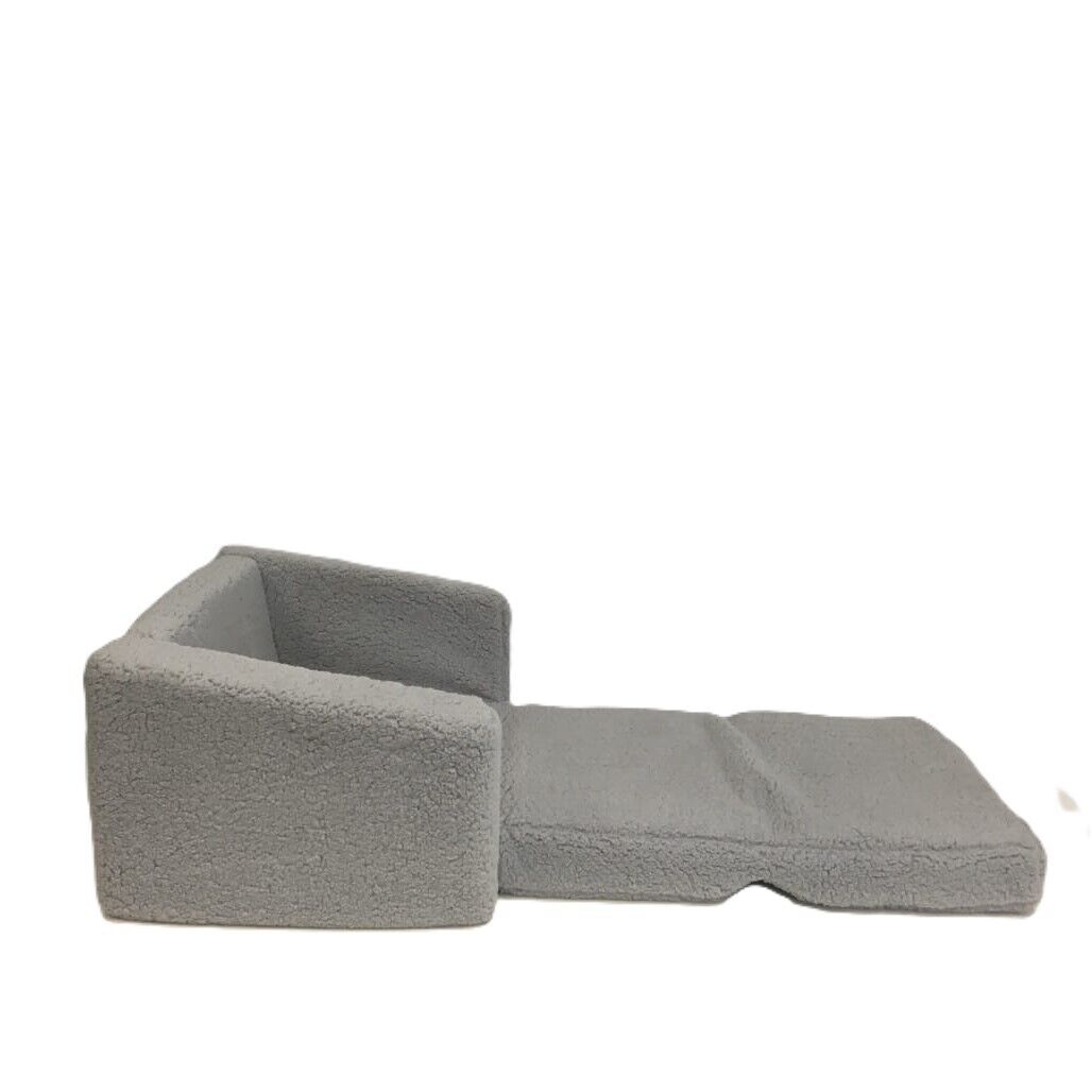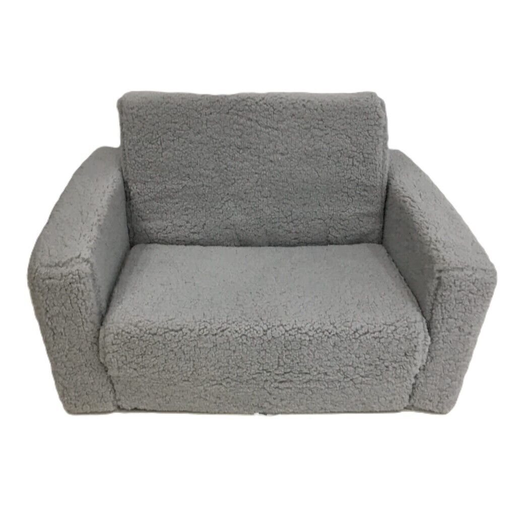 - Ex-Display Boucle Look Super Soft Grey Flip Out Children Small Sofa Armchair NEW