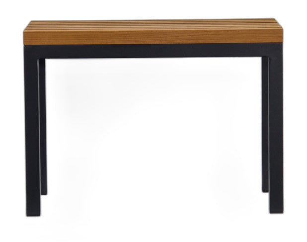 - Satara Natural Teak/Black Steel Leg Male Side Table 74 X 36 X 55Cm NEW