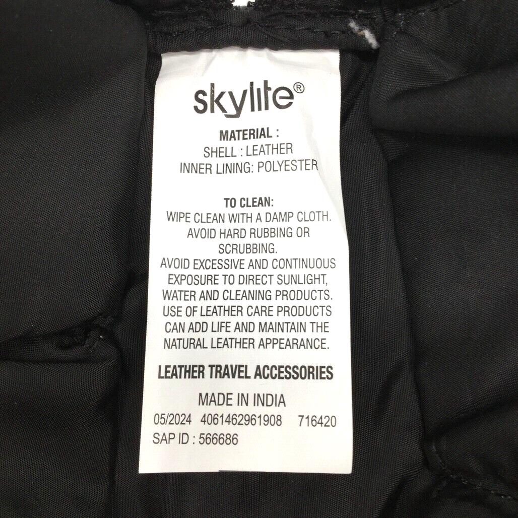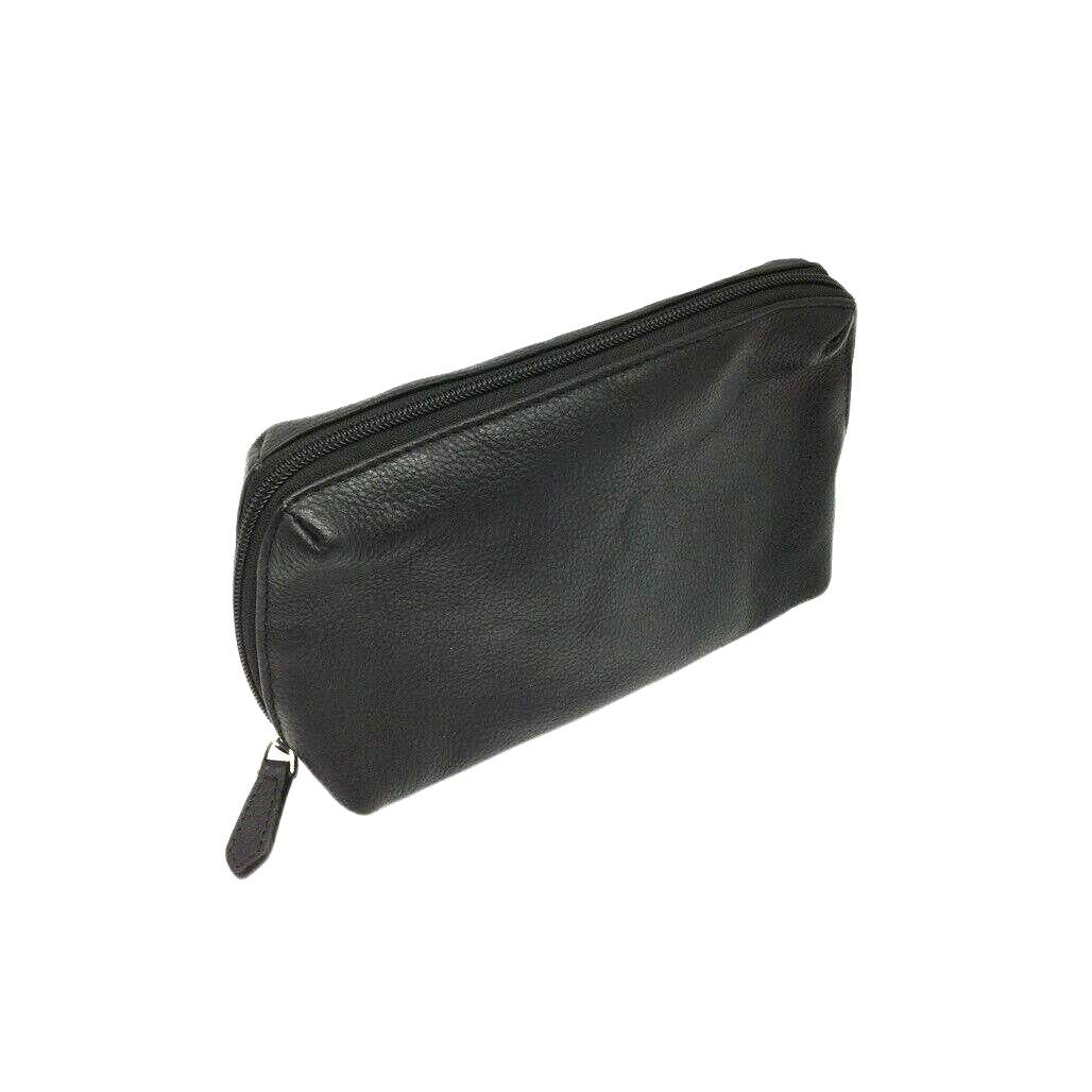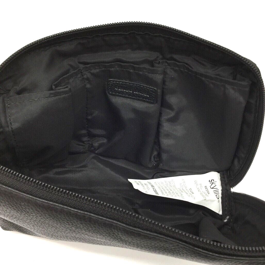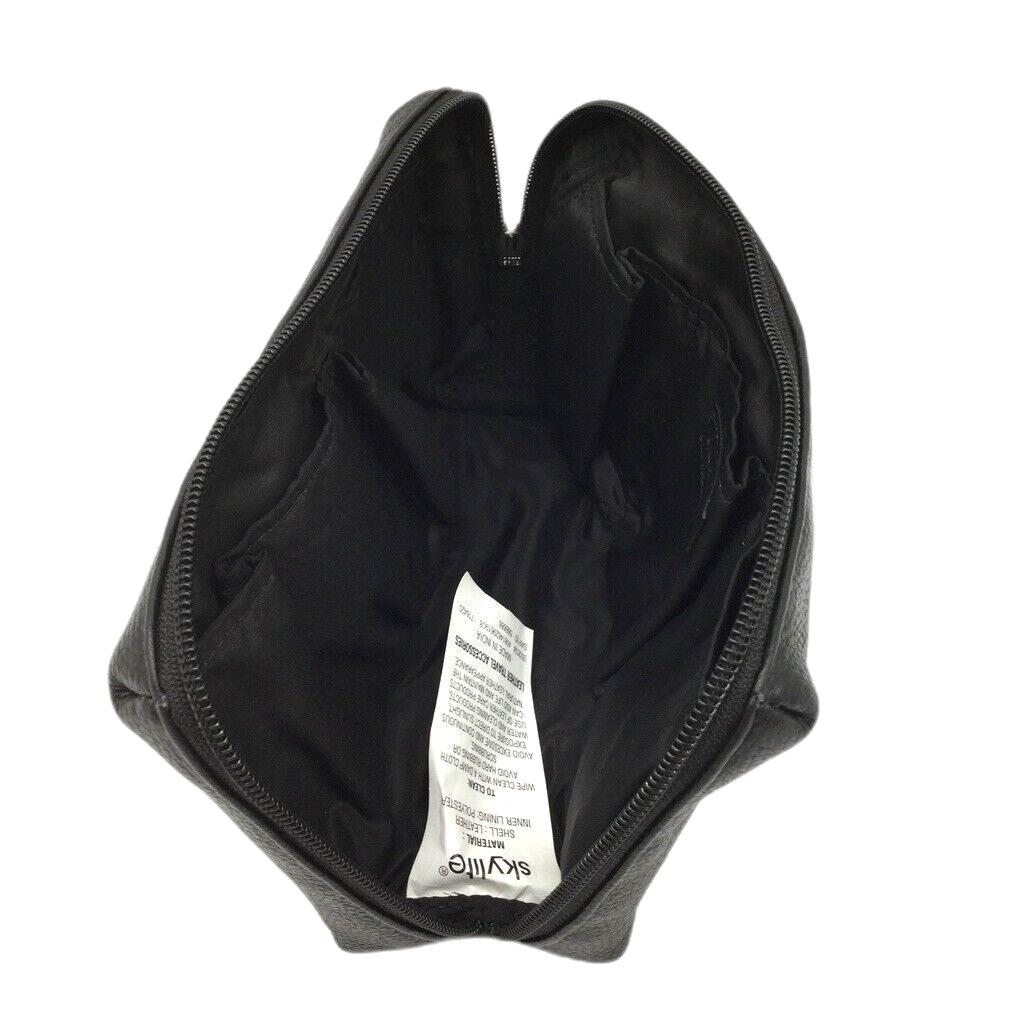 - Skylite Black Genuine Real Leather Pouch Travel Makeup Bag Zip Closure NEW