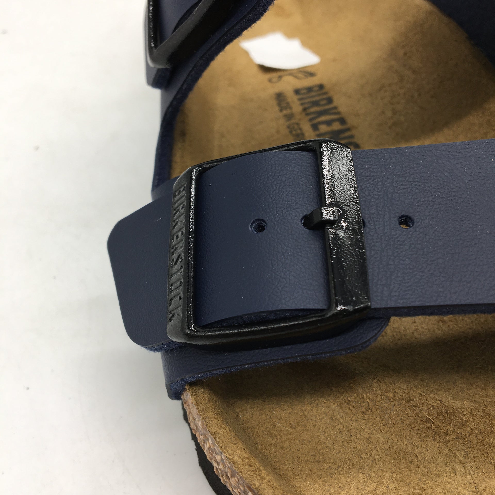 Brand New In Box Non-Leather Upper -Regular Fit Ladies 7 Mens 5 EU 38 245mm Line 0051751 In a Blue colourway, these sandals sit on a natural cork footbed with a leather insole that moulds to the shape of your feet for next-level comfort. Featuring the classic two-strap design made with Birko-Flor PVC, the straps have a cosy fleece lining for easy wear. They have adjustable buckles for a custom fit, and a tough rubber outsole underfoot to keep ya gripped. Finished up with Birkensock branding engraved on the buckles. Care & Material: Textile & Synthetic Upper/Synthetic Sole