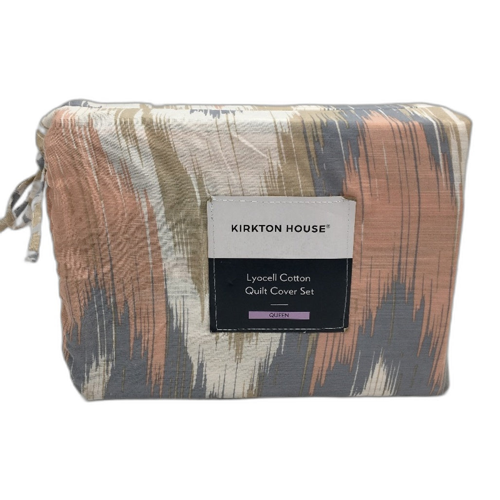 - Kirkton House Lyocell Cotton Neutral Toned Pattern Quilt Cover Set QUEEN Bed NEW