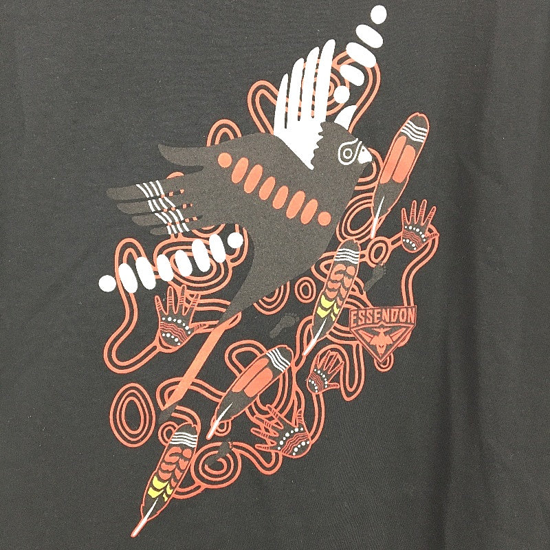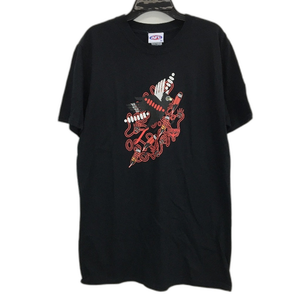 - Essondon Bombers AFL Indiginous Print 100% Cotton Black T-Shirt Mens Size M NEW