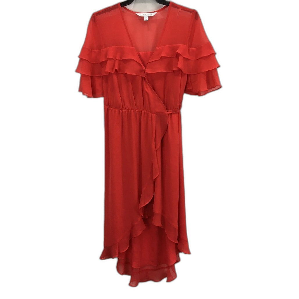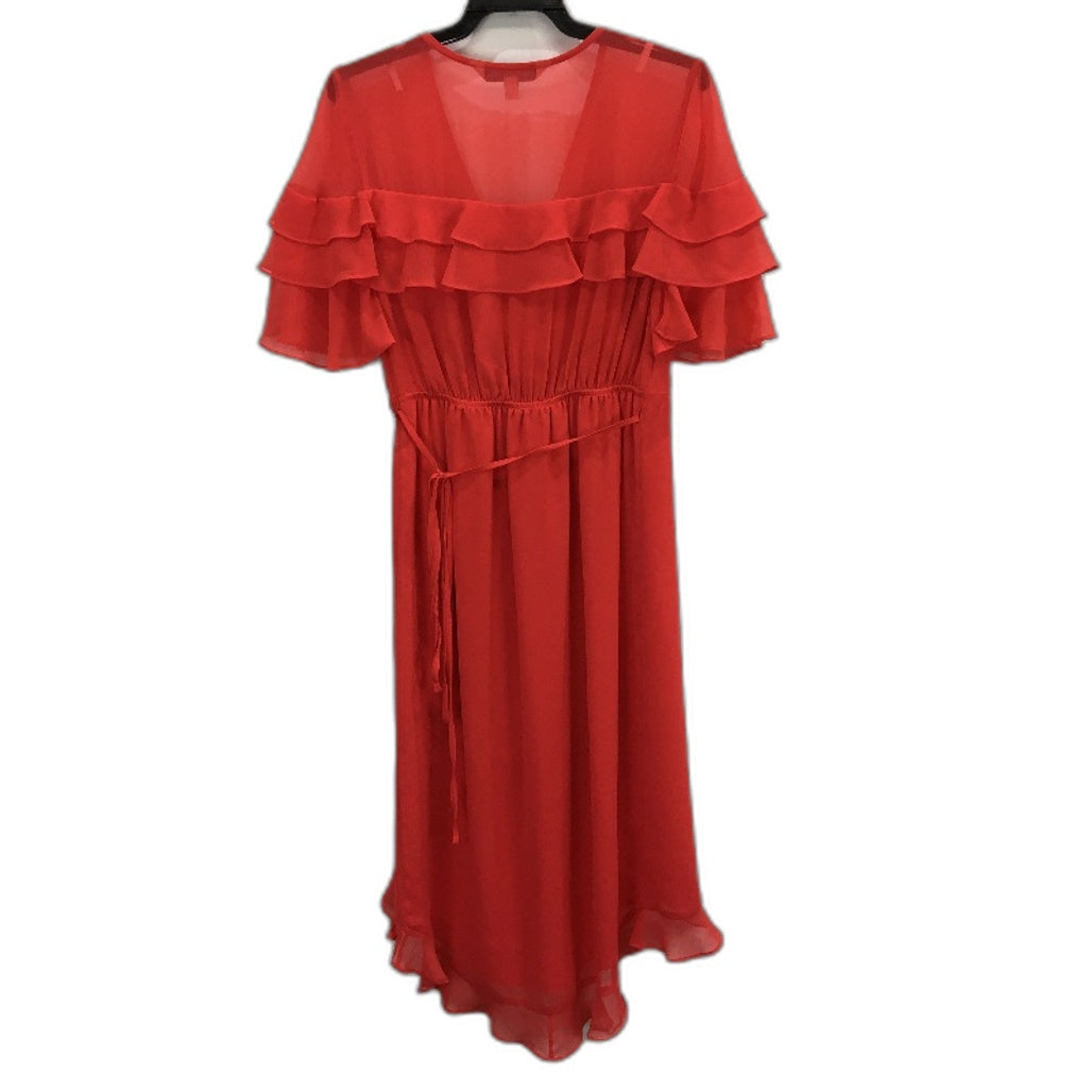 - Forever New Red Crossover Belted Wrap-Tie Ruffled Midi Dress Ladies Size AU 6