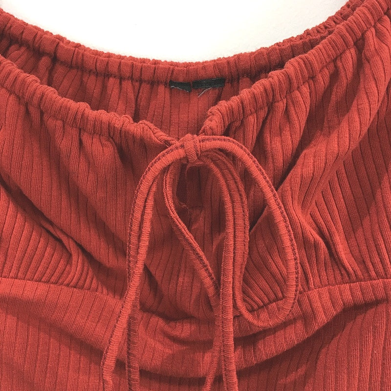 - Forever New Red Ribbed Tie Front Lettuce Trim Mini Dress Ladies Size AU 8