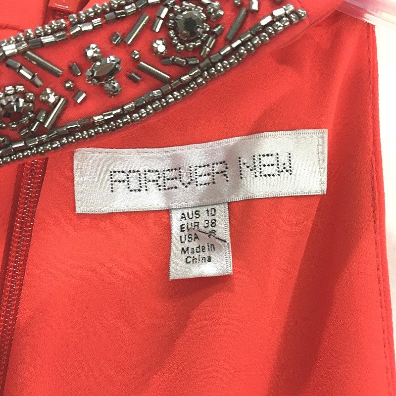 - Forever New Red Beaded Cut-Out Waist High-Neck Maxi Dress Ladies Size AU 10