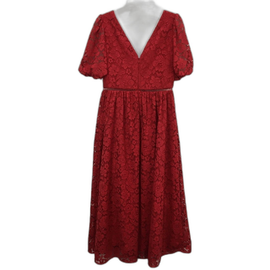 - Forever New Red Floral Mesh Lining Short Sleeve Midi Dress Ladies Size M NEW