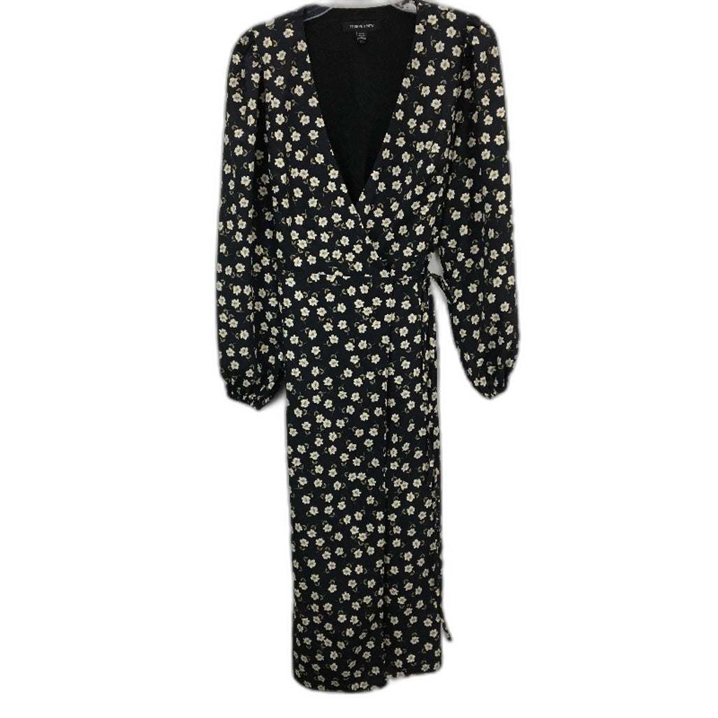 - Forever New Black Floral Pattern Long Sleeve Wrap Midi Dress Ladies Sz AU 10 NEW