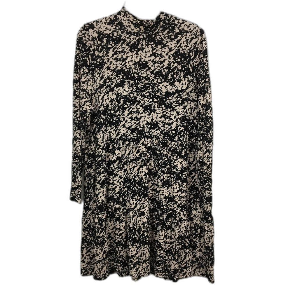 - Mini Dress Black & Beige Patterned Stretchy Long Sleeve Ladies Size S/M NEW