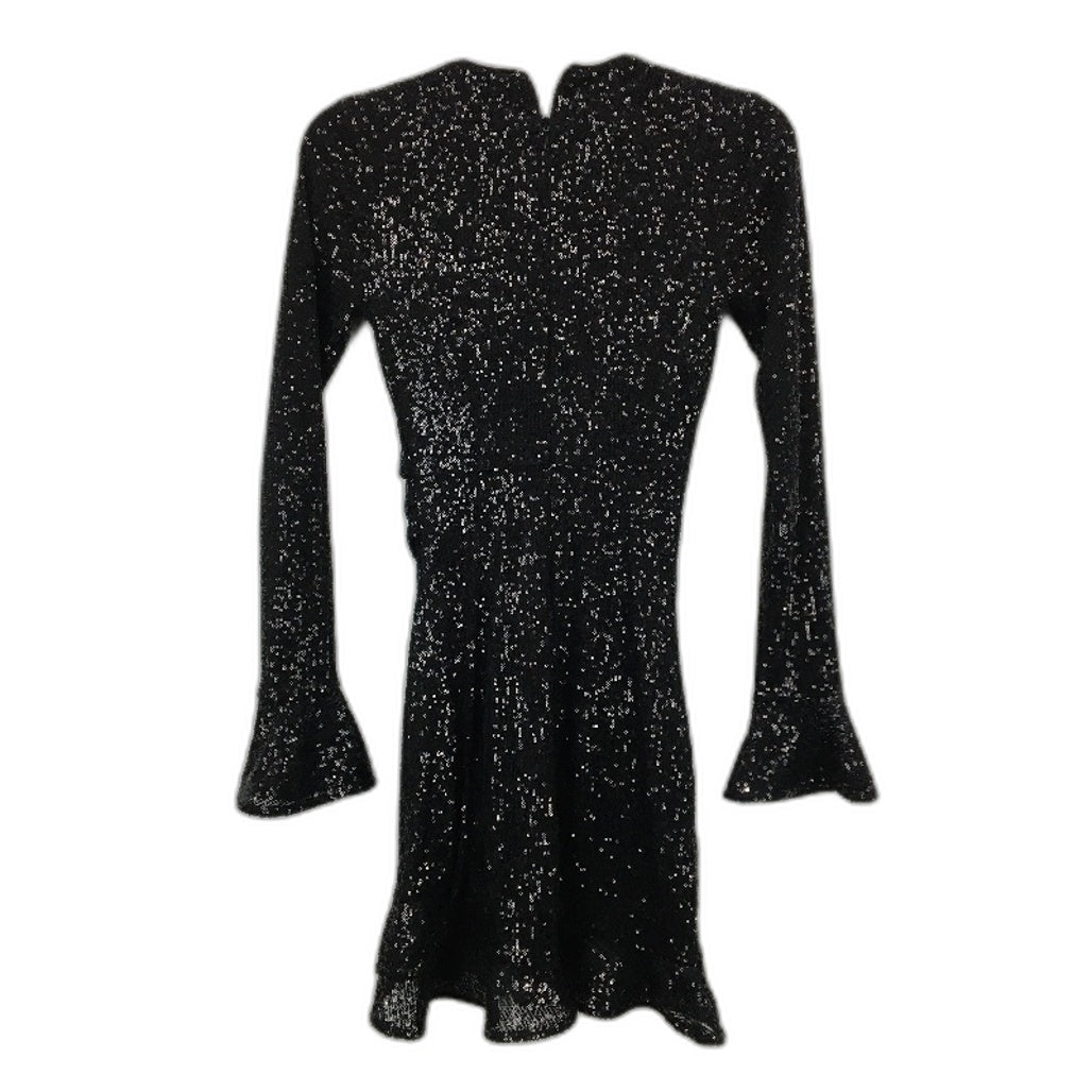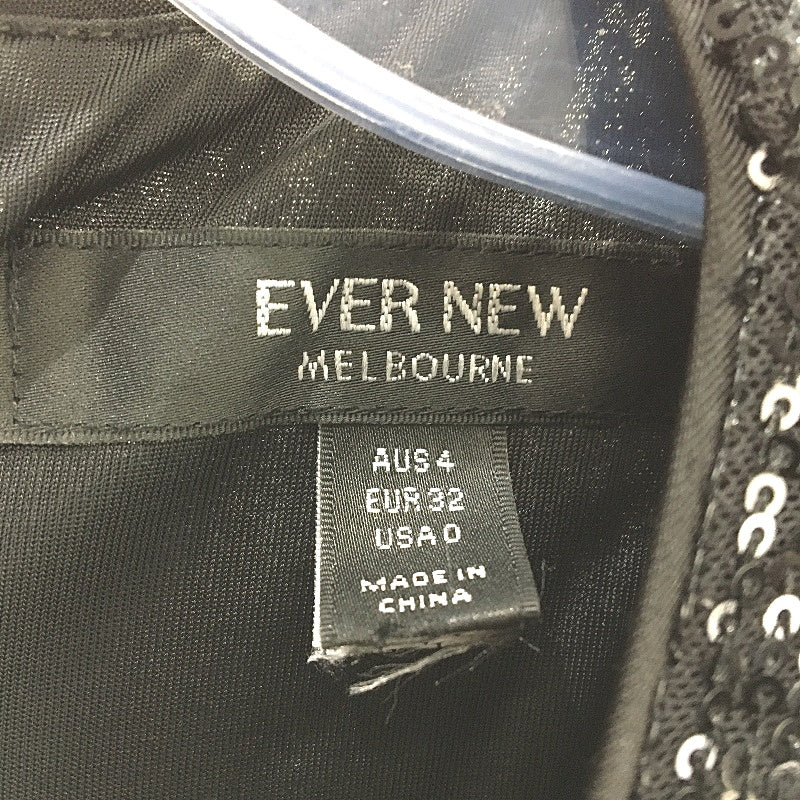 - Ever New Black Sequin Long Sleeve Ruffle Trim Mini Dress Ladies Size AU 4 NEW