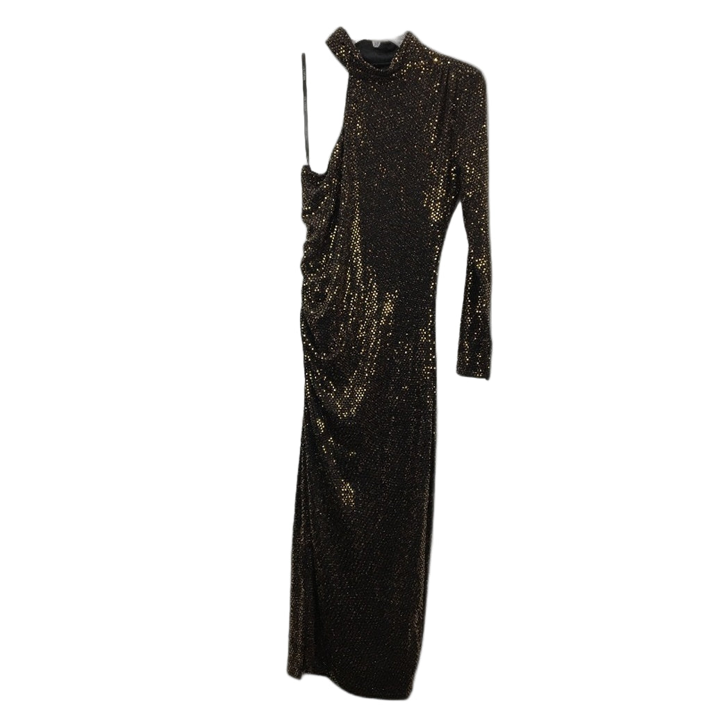 - Forever New Black & Gold Long Sleeve One-Shoulder Midi Dress Ladies Size AU 12