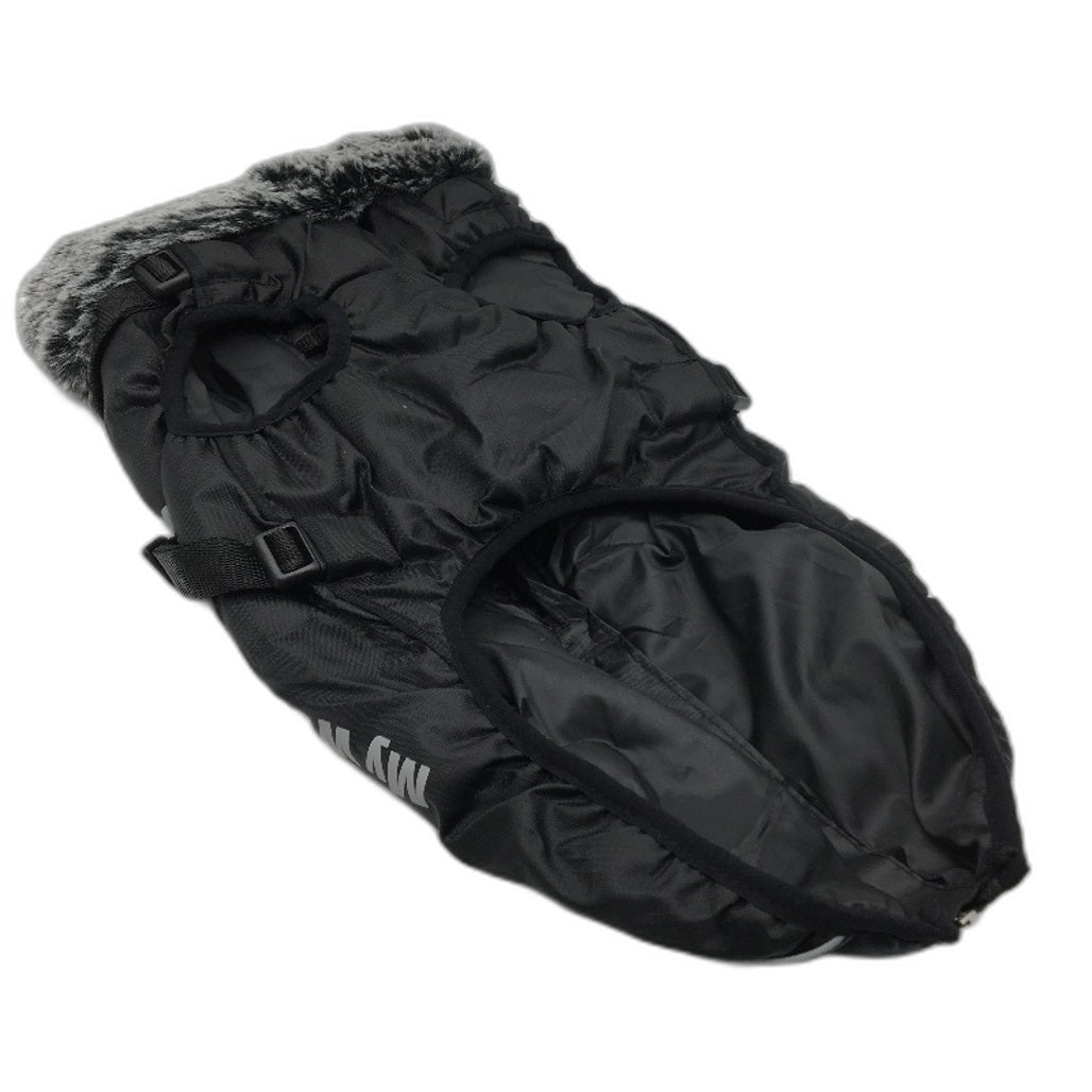 - Doggy Waterproof Vest Grey & Navy Winter Coat Dog Jumper Harness Size XS