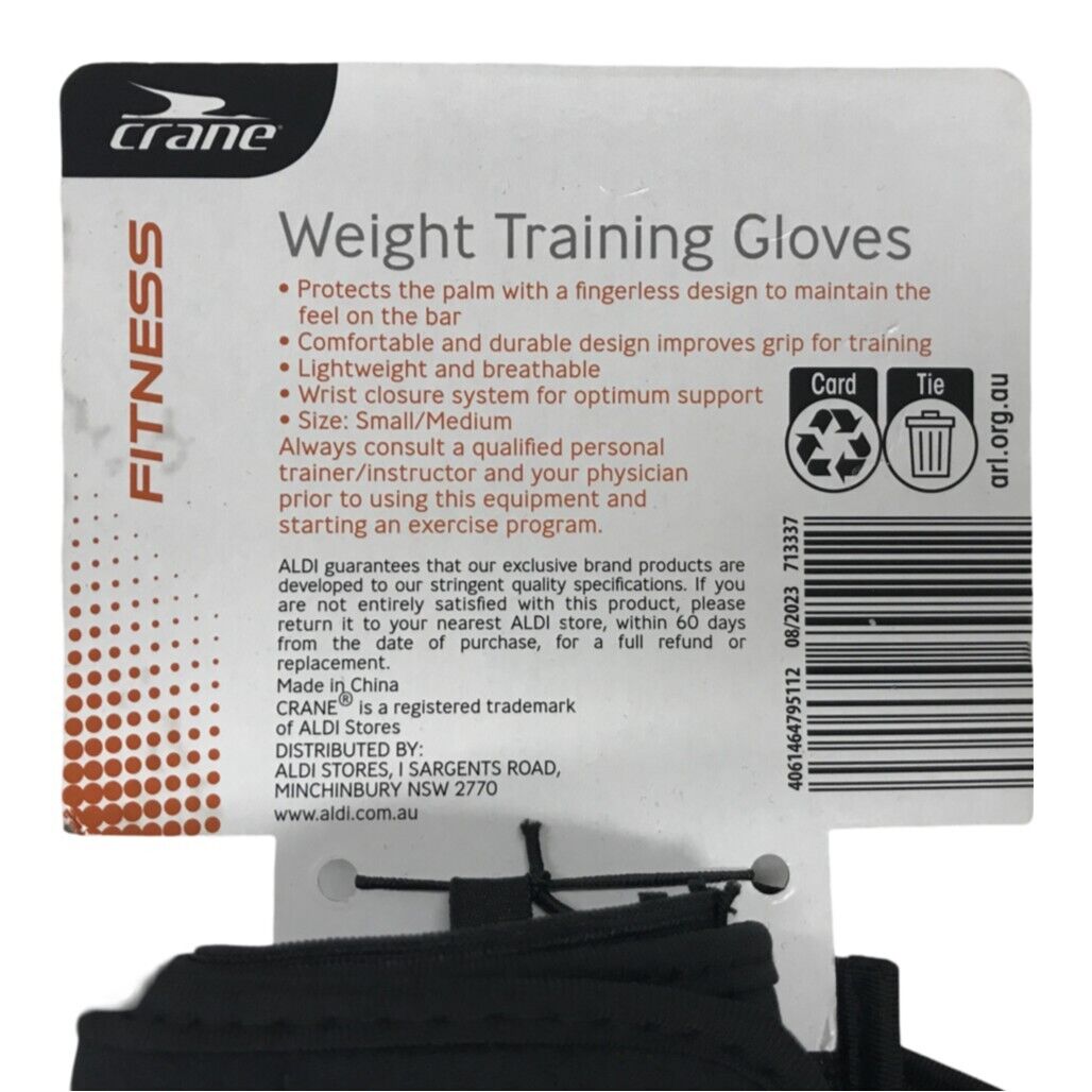 - Crane Fitness Fingerless Padded Weight Training Gloves Black Unisex Sz S/M NEW