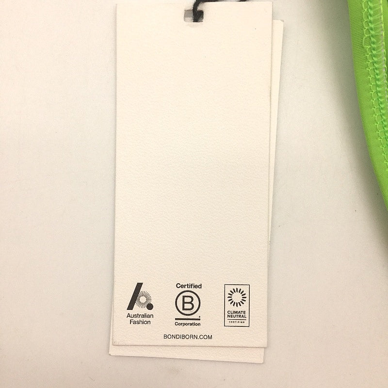 Elevate your swimwear collection with this stunning green piece from Bondi Born. Perfectly designed to refresh your summer wardrobe, this swimwear combines style and comfort effortlessly. New with swing tags, it’s ready to make a splash, though it may have minor creases and dust from storage, ensuring it’s fresh and unused.