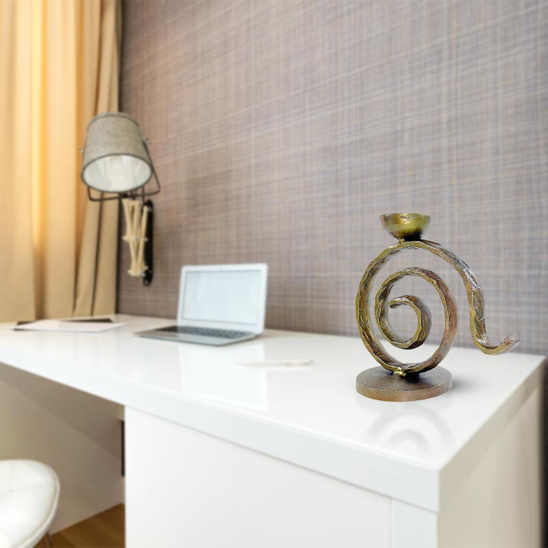 Elevate your home decor with the exquisite Brass Antique Candle Spiral, a striking candle holder that enhances any interior. Measuring 20.25x10 cm, this captivating piece is crafted from durable aluminium and cast iron, ensuring both style and longevity. Its antique brass finish adds a touch of timeless elegance, making it a versatile addition to any space.