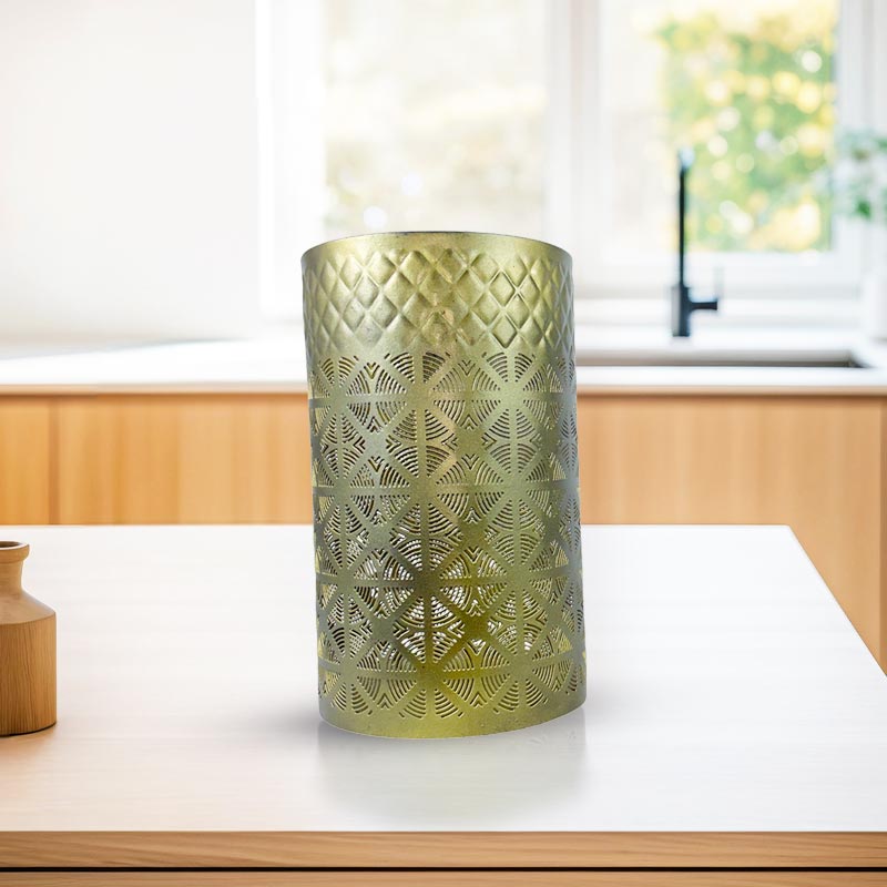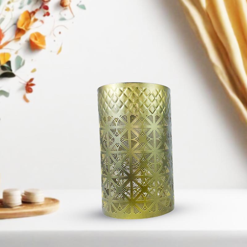 Elevate your home decor with this elegant handmade iron gold candle holder. Its striking blue and gold colour combination adds a touch of sophistication to any room. The cone-shaped design and durable sheet metal construction make it both stylish and long-lasting.