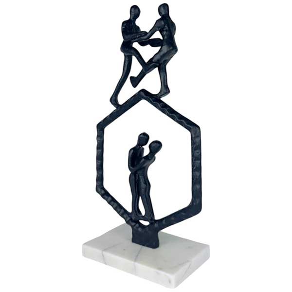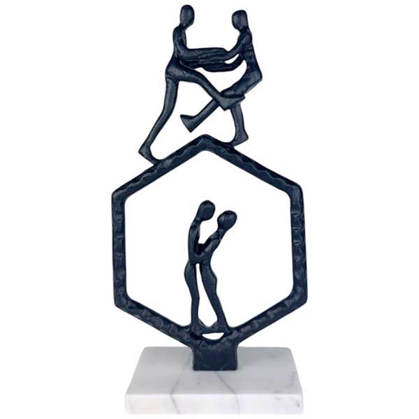 The Dancing Pairs Sculpture is a stunning handmade piece that instantly elevates any space with its artistic presence. Featuring a sleek black matte powder coating paired with a luxurious white marble base, it embodies elegance and modern design. This exquisite sculpture captures the essence of movement and connection, making it a timeless addition to your home decor.