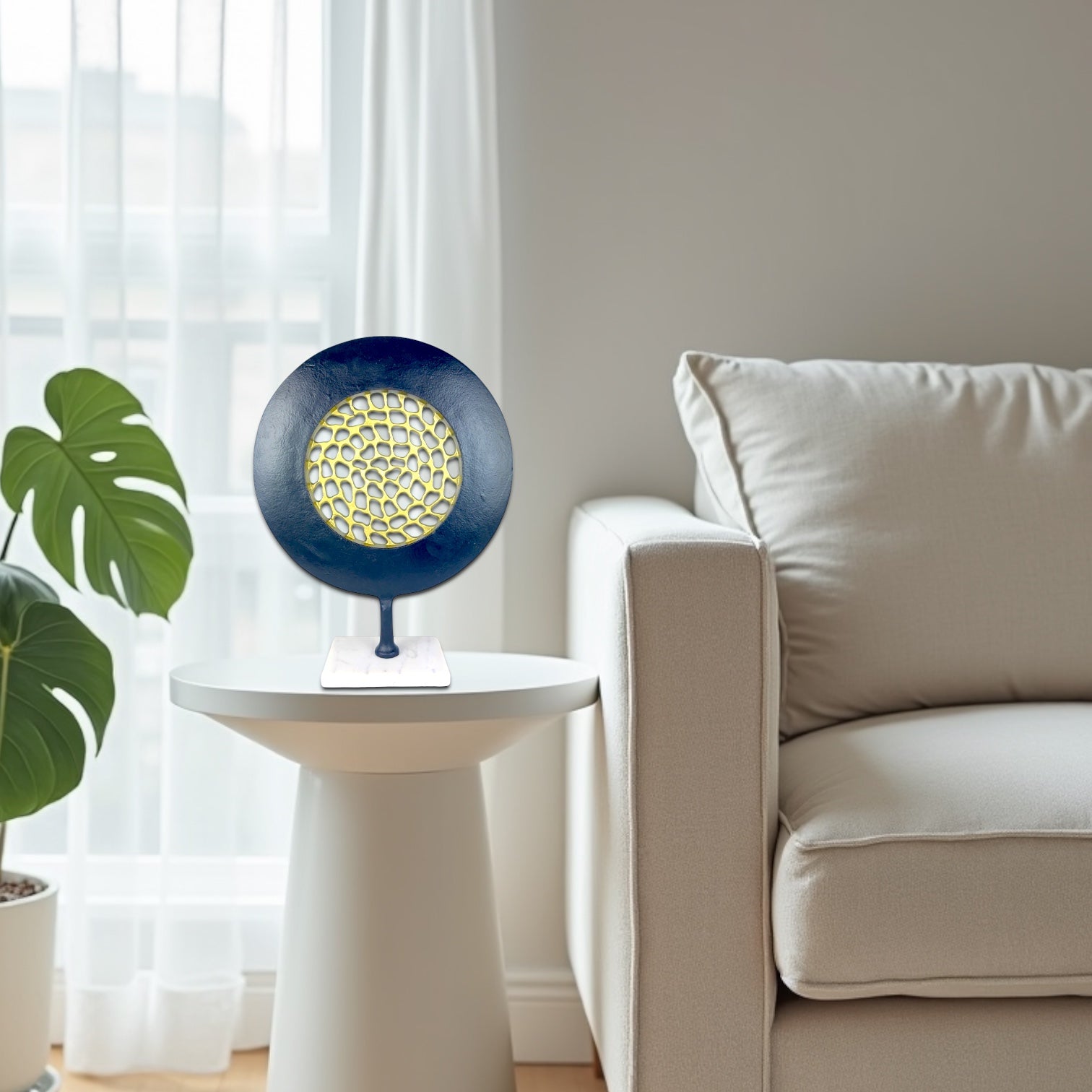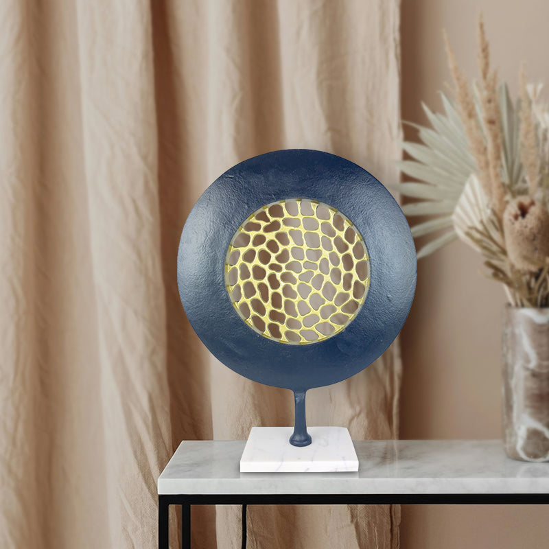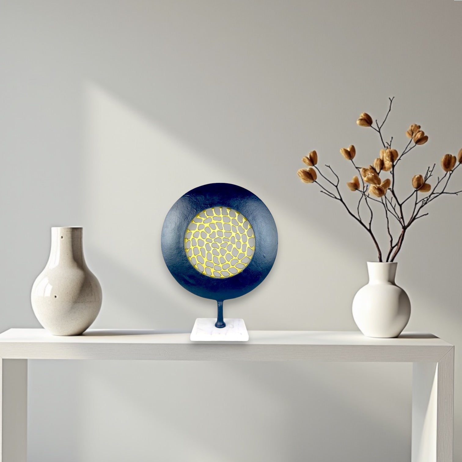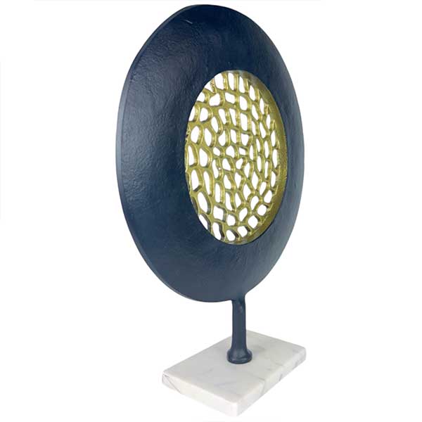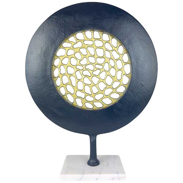 Transform your modern living space with the Abstract Mesh Orbit, an elegant handmade decorative piece that exudes sophistication. Its unique design, combining black matte powder coating with gold and white marble, creates a striking visual impact. Crafted for art enthusiasts and design lovers, this piece is both durable and versatile, making it a perfect addition to any contemporary home.