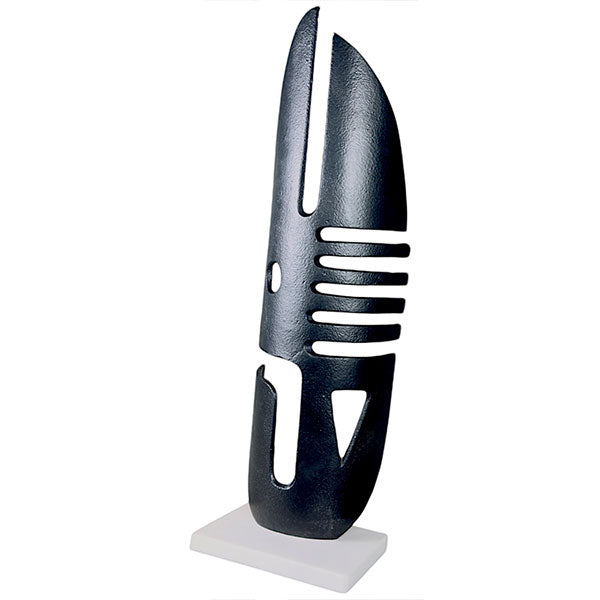 Elevate your living space with this striking abstract tribal sculpture that exudes cultural sophistication. The compelling black and white design, anchored by a solid marble base, makes it a captivating centerpiece for any room. Handcrafted with precision, this piece combines modern elegance with timeless artistry, ensuring it complements any decor style effortlessly.