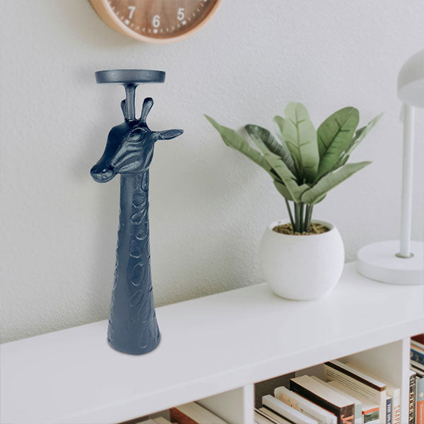 Introducing the Giraffe Head Candle Holder, a charming blend of whimsy and elegance designed to elevate your living space. Crafted from black aluminium, this unique candle holder features an eye-catching design that adds a touch of sophistication to any room. Its durable construction and modern black matte finish ensure it will be a stylish and lasting addition to your home decor.