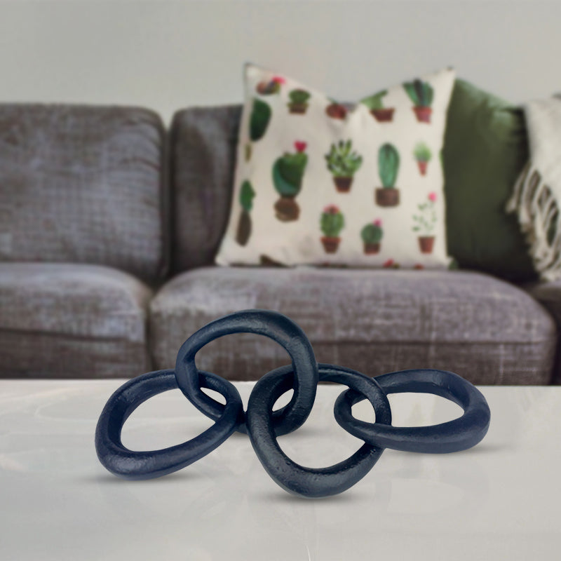 Transform your space with a striking link chain sculpture that merges artistry and modernity. Crafted from durable black aluminium, this contemporary piece enhances a variety of interior styles, especially those with a sleek, minimalist aesthetic. Its robust construction ensures it remains a standout feature in your home for years to come.