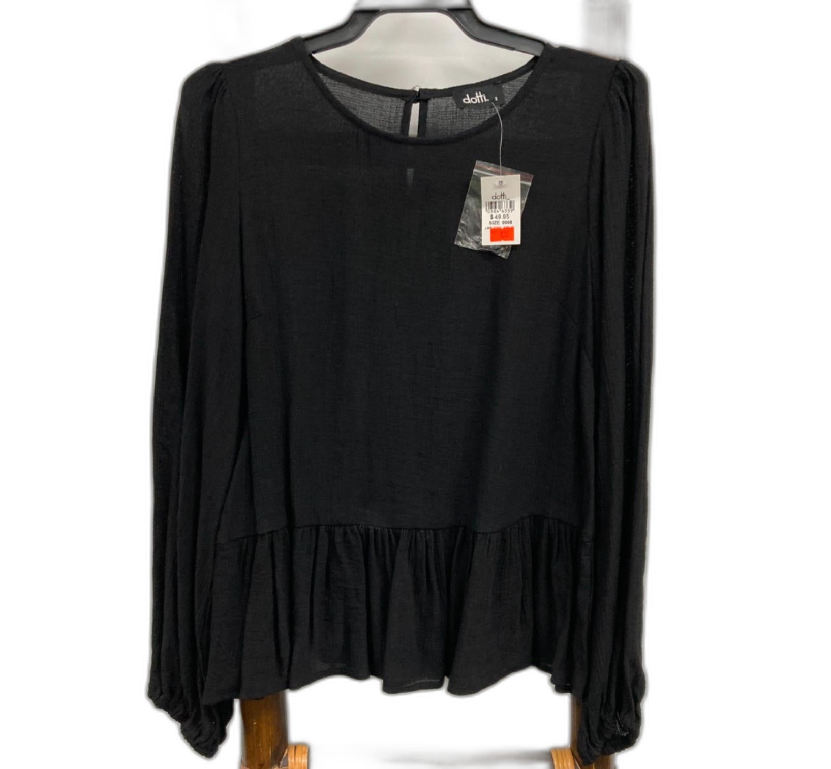 Elevate your wardrobe with this chic black top, designed to add effortless style to any outfit. Its relaxed fit and frilled hem offer a perfect blend of comfort and sophistication, making it ideal for both casual and formal occasions. Crafted as a brand-new corporate donation, this piece ensures premium quality and a polished look.
