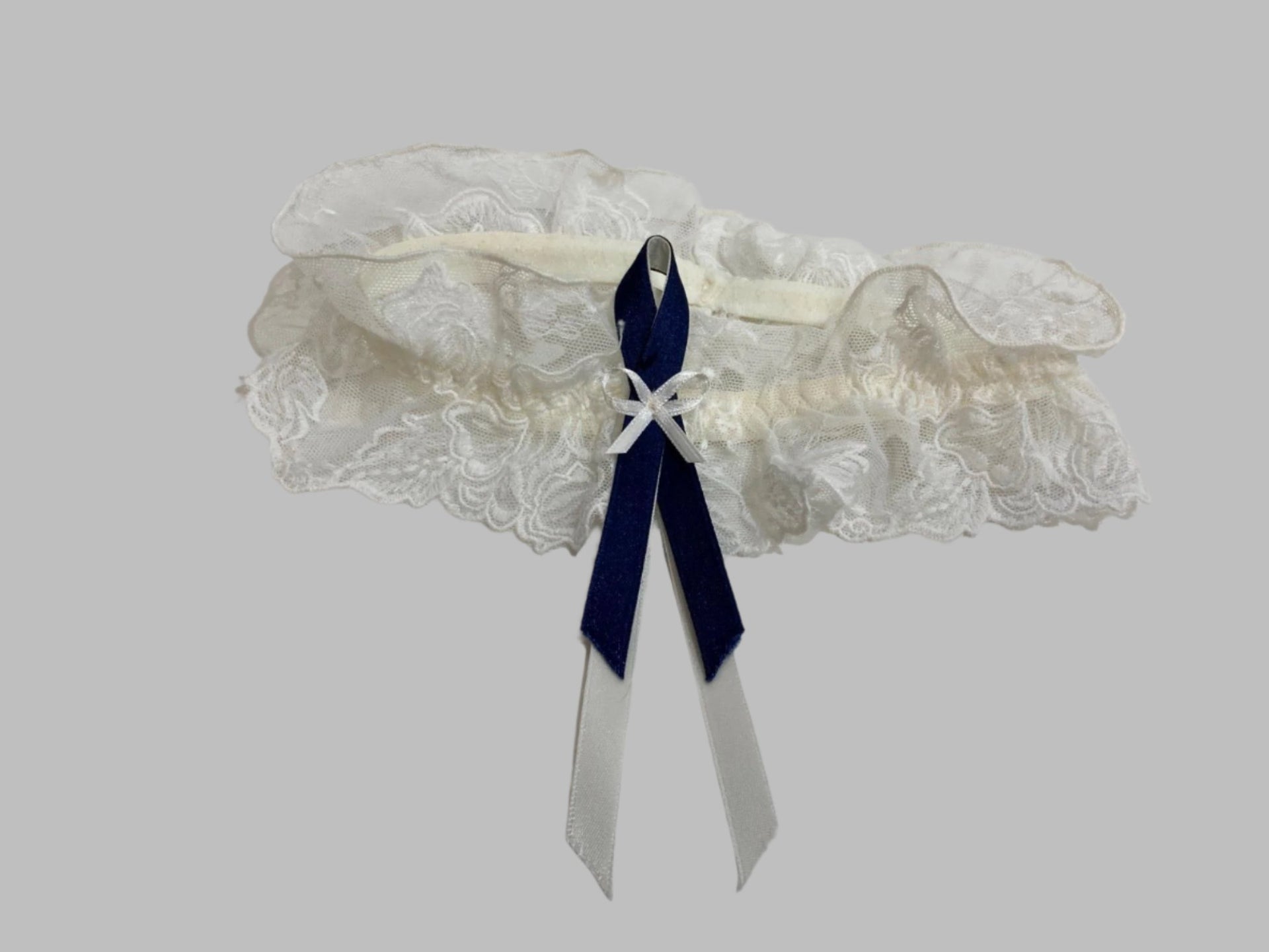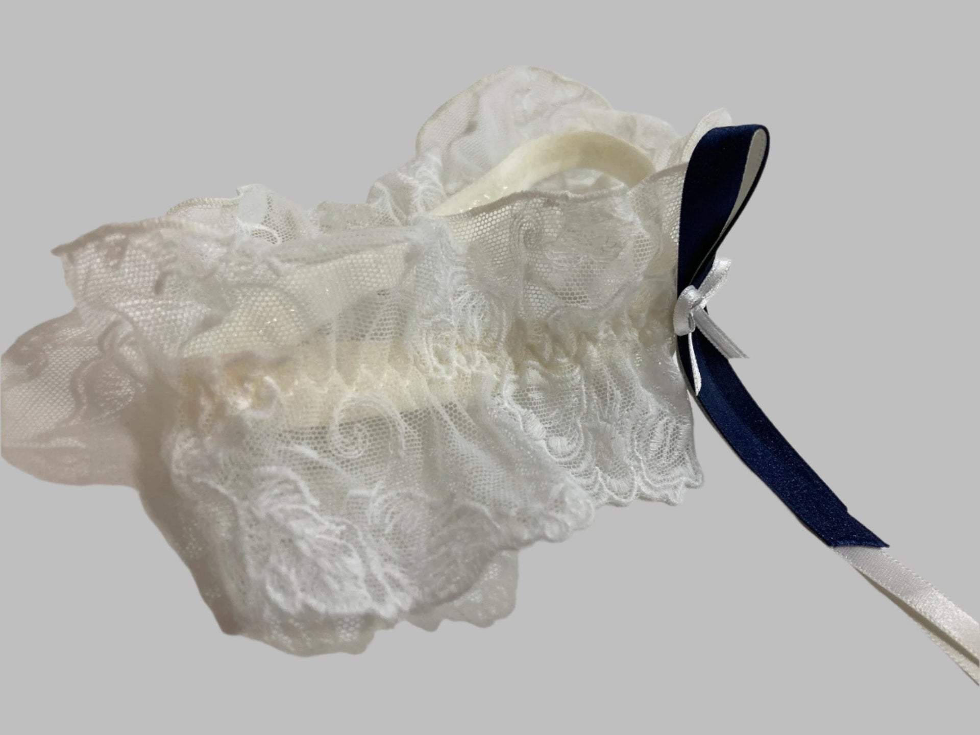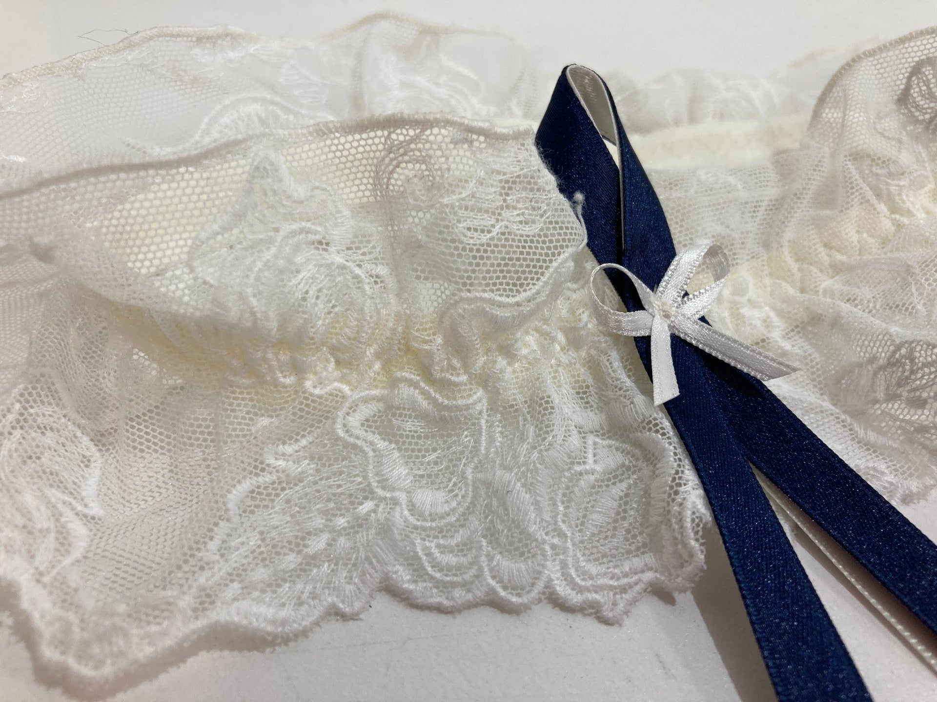 Add a touch of elegance to your wardrobe with this stunning navy and white floral garter. Perfect for enhancing any outfit, this piece combines timeless design with modern appeal. Crafted with care and in new condition, it’s a versatile accessory that complements any style effortlessly.