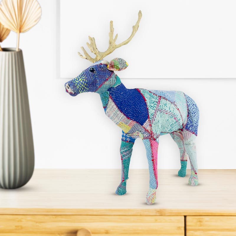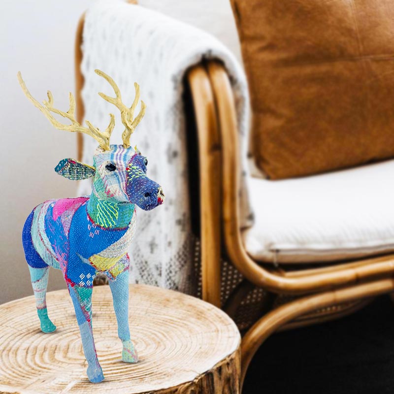 Transform your living space with the enchanting Blitzen Reindeer Sculpture. This stunning piece, measuring 42x13x45 cm, effortlessly combines charm and vibrancy, making it a perfect focal point for any room. Crafted with care, its handmade design and multi-color palette add a touch of elegance and whimsy to your home decor.