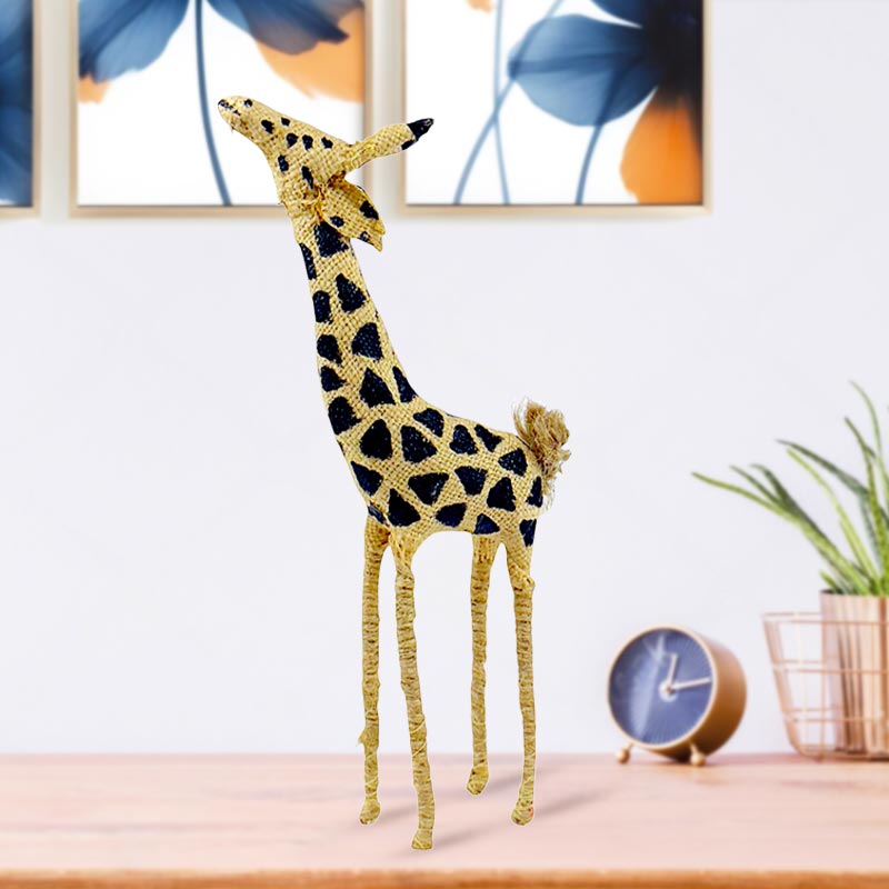 Elevate your home décor with the charming Archie Baby Giraffe Sculpture, a handmade masterpiece that blends artistry and functionality. Crafted with a unique combination of galvanized wire, cut paper, and natural jute, this sculpture adds a touch of whimsical elegance to any space. Its natural and black color palette ensures it complements a variety of interior styles, making it a versatile and eye-catching addition to your collection.