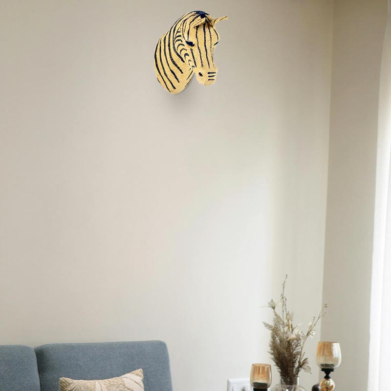 Transform your living space with the captivating Zebra Head Jute Wall Art. This striking piece combines unique materials like galvanized wire, PP cutting, paper pulp, and fabric, creating a harmonious blend of texture and style. Perfect for adding a modern yet rustic touch to any room, this handmade decor is both durable and versatile.