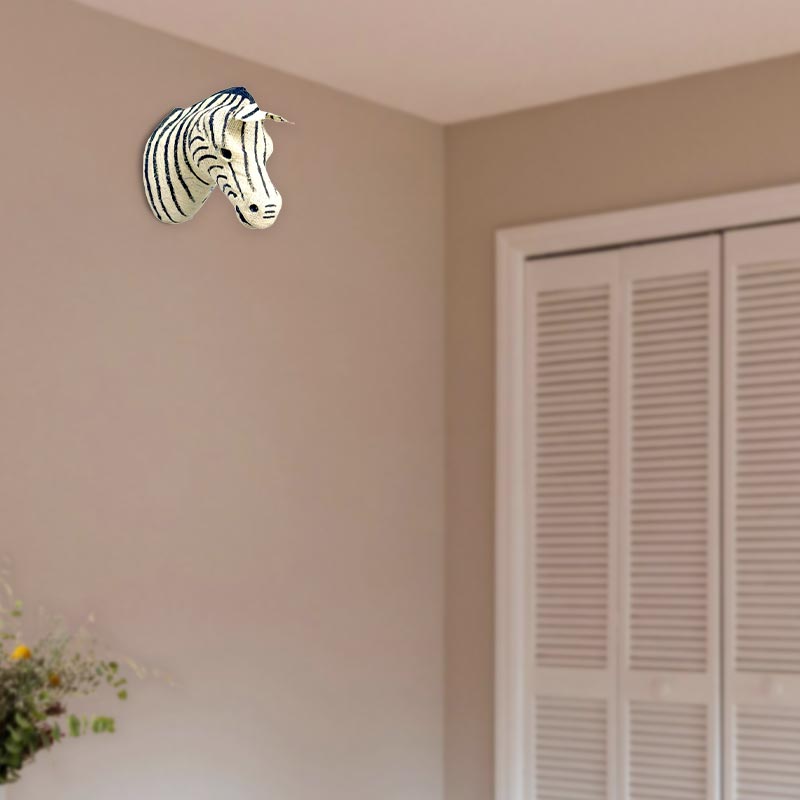 Transform your space with the striking Zebra Head Cotton Wall Art, a handmade masterpiece that blends artistry and nature. Measuring 20x10x17 cm, this piece adds a unique and captivating focal point to any room. Crafted from a mix of fabric, paper pulp, and galvanised wire, it combines durability with an elegant, natural aesthetic.