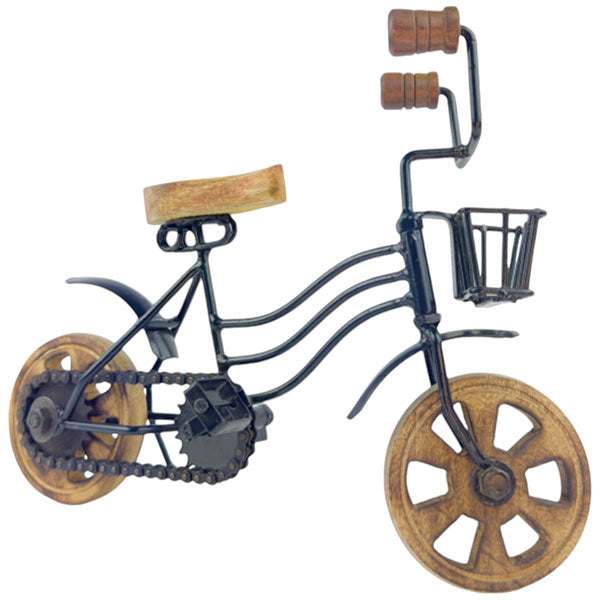 The "Bike with Wooden Wheel" accent table is a captivating piece that effortlessly blends rustic charm with vintage aesthetics. Its unique wooden wheels and quaint design make it a standout addition to any space, perfect for adding character and warmth. Crafted with care, this handmade table combines durability and style, making it a versatile decor piece for your home.