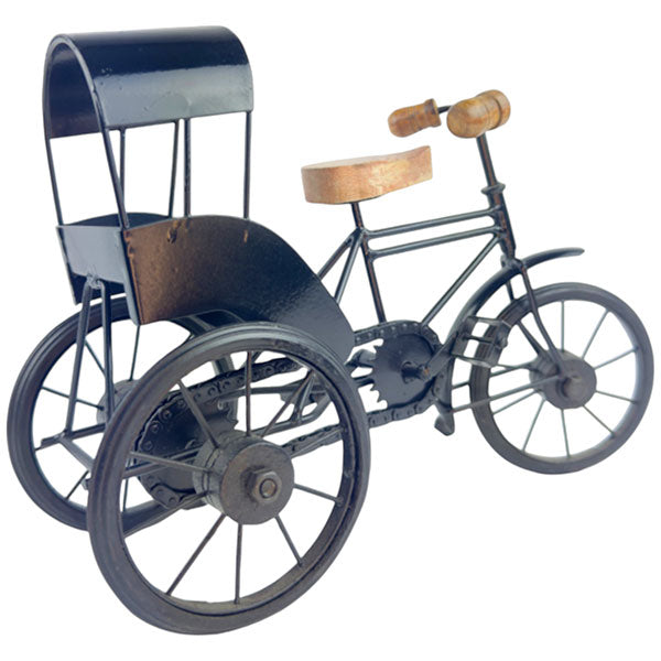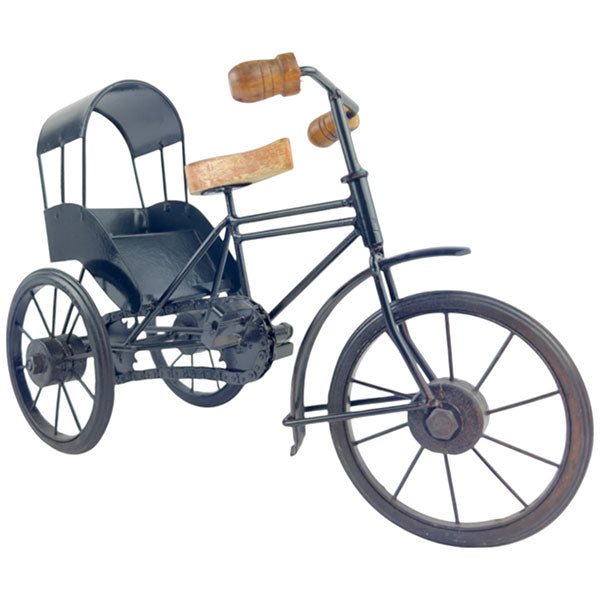 Transform your living space with the charming Baby Rickshaw table accent, a handmade piece that effortlessly blends rustic elegance with modern durability. Measuring 30.48x21.59 cm, this versatile decor item adds a unique touch to any room. Crafted from a combination of wood and metal, it features a striking black and natural wood finish that complements a variety of styles.