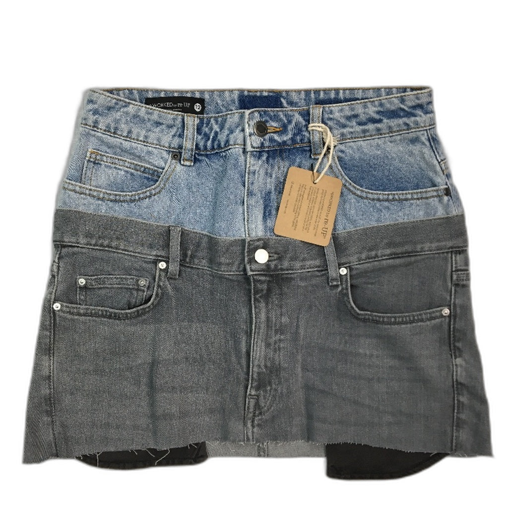 Elevate your wardrobe with this stunning blue denim skirt, perfect for adding a touch of effortless style to any outfit. Crafted from upcycled denim, this piece is not only eco-friendly but also uniquely handmade, ensuring no two skirts are alike. Its versatile design and durable material make it a must-have for any fashion-forward individual.