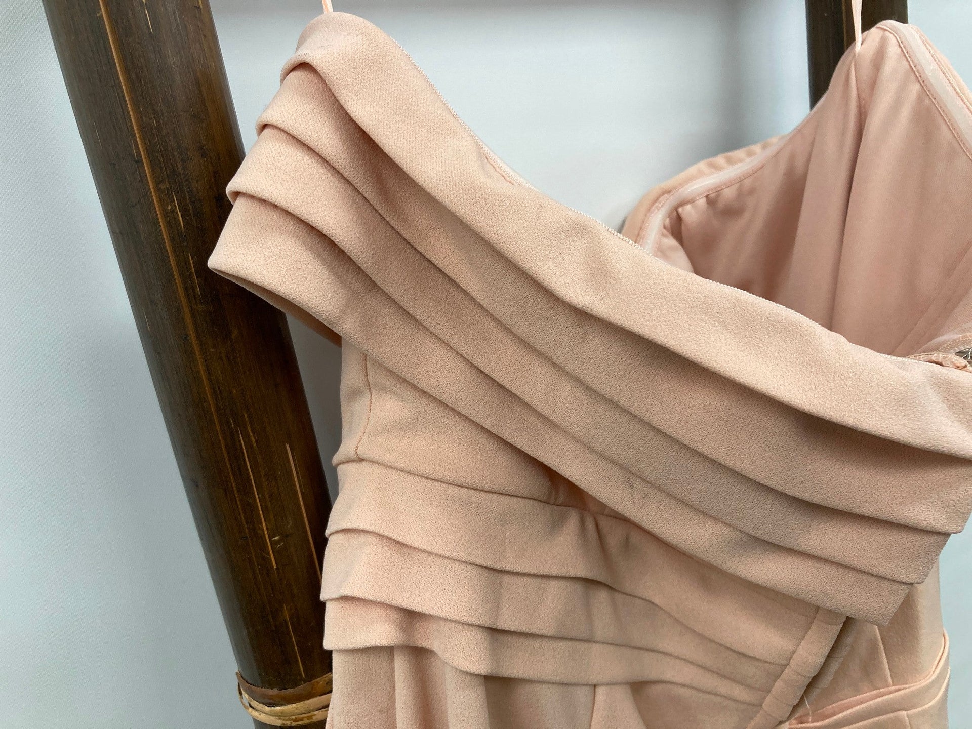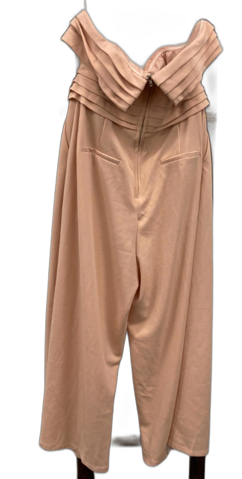 Elevate your wardrobe with this stunning beige jumpsuit, perfect for adding timeless elegance to any occasion. Designed with a strapless silhouette, it exudes sophistication while ensuring a comfortable fit. Crafted for ladies, this XL (14) jumpsuit is a versatile piece that transitions seamlessly from day to night.