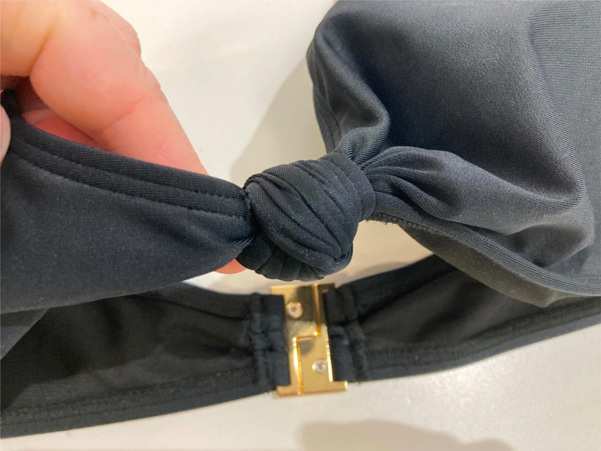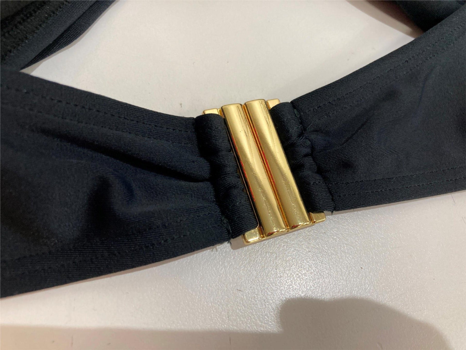 Elevate your swimwear collection with this sleek and stylish black bikini top. Designed for ladies who value both fashion and comfort, this piece is perfect for beach days or poolside lounging. Its removable padded design ensures a flattering fit, while the brand-new condition guarantees top-notch quality and durability.