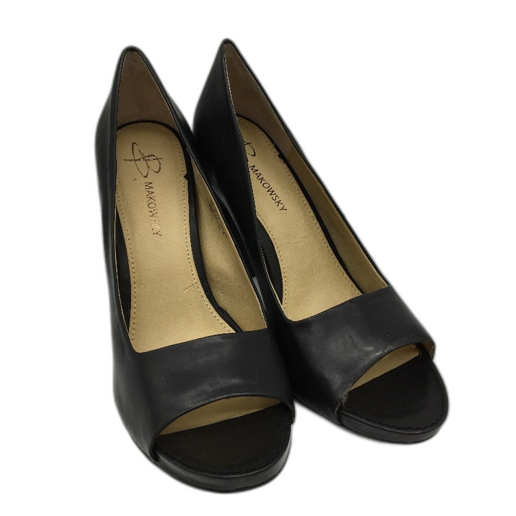 - B.Makowsky Black Leather Open Toed Heels Ladies Small Fit Size 9M NEW
