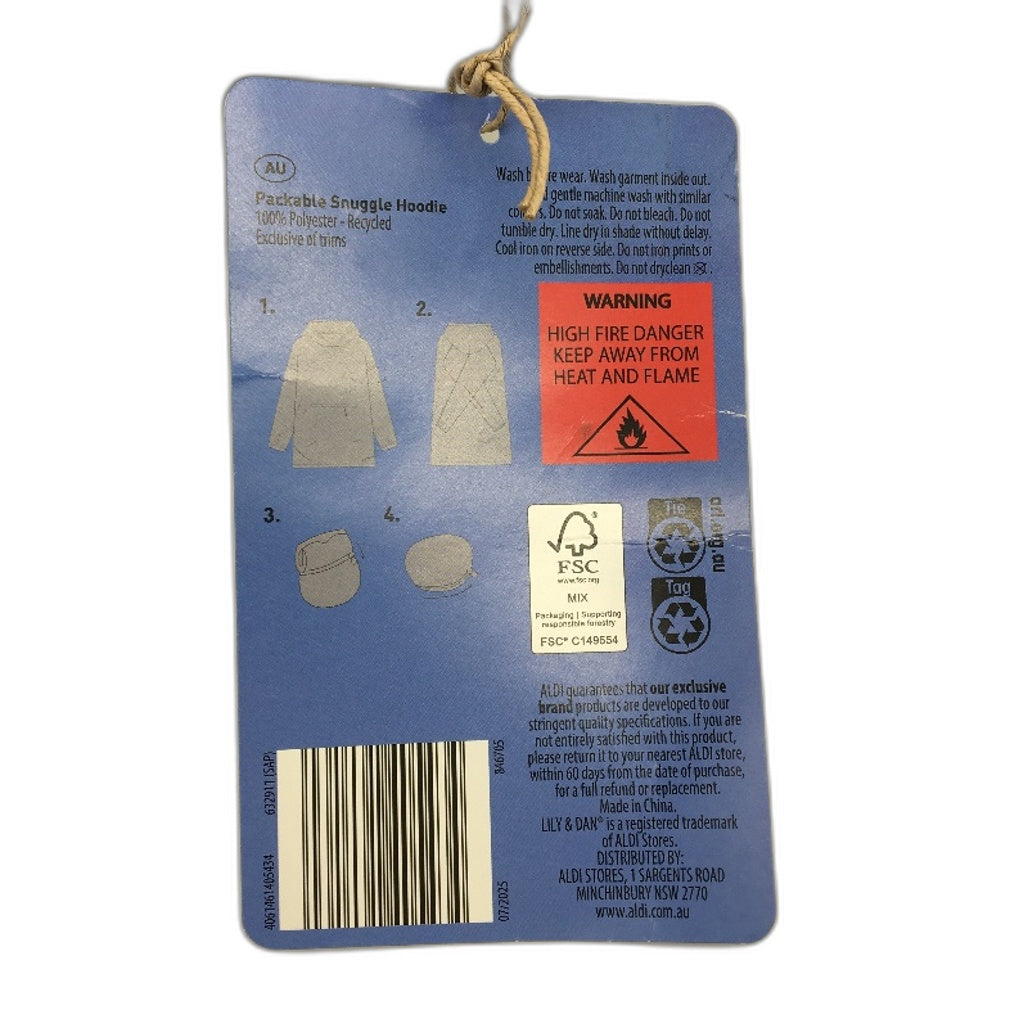 Brand New without Tag. Line 846705. -Ultra-soft fleece Rolls up into a travel-friendly carry pouch 100% recycled polyester Assorted designs and colours - Featuring a hood, roomy front pocket and an oversized fit A super-soft fleece for extra comfort and warmth Perfect for a chilly night indoors or outdoors Glow-in-the-dark for extra fun – just expose your snuggle hoodie to a light source to activate the glow-in-the-dark feature