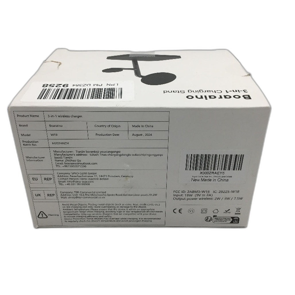 Box opened for inspection, phone charger tested & worked, watch&airpods charger not tested. Surface slightly dusty.