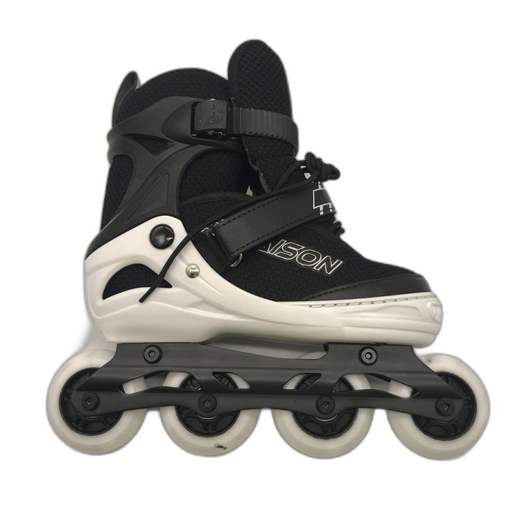 Elevate your little one's outdoor adventures with these stylish Black&White inline skates. Designed for kids aged 0-3, these rollerblades combine practicality with a sleek, modern look. New with tags and including a storage bag and socks, they’re perfect for beginners and ready to roll straight out of the box!