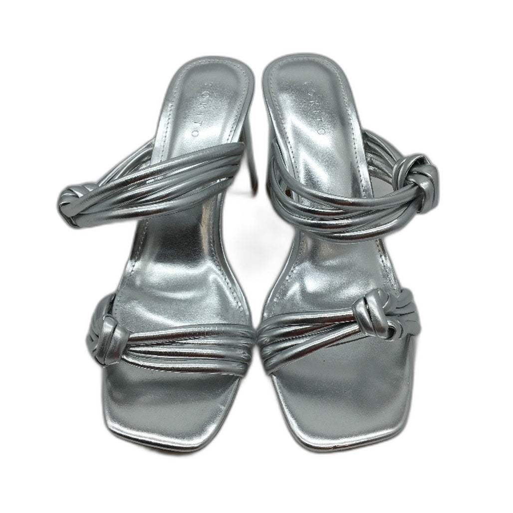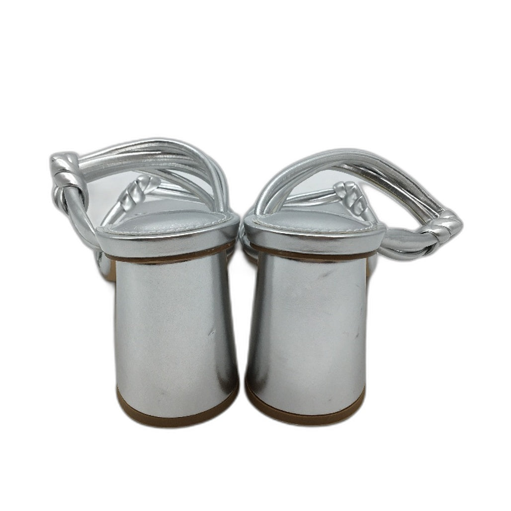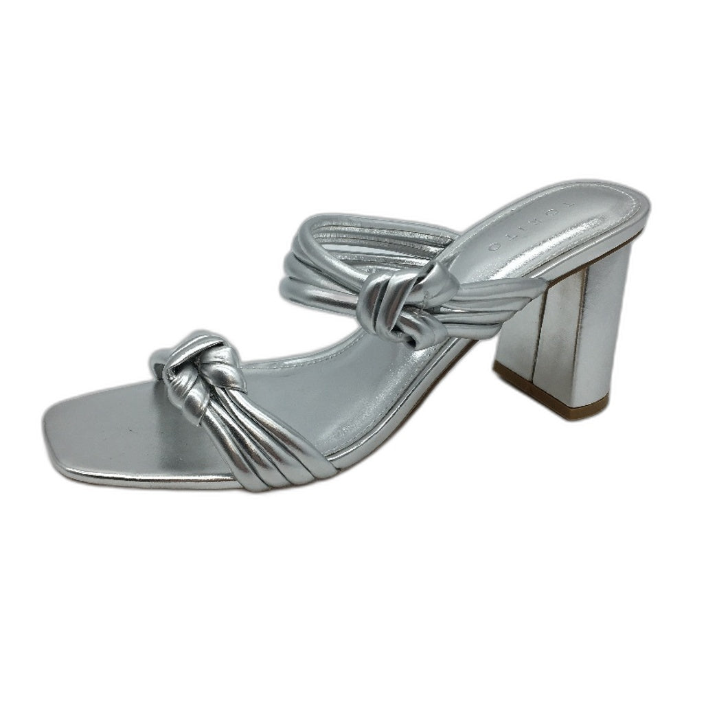 - Tokito Winnie Silver Wide Heeled Knotted Slip On Sandal Ladies Size 9 SAMPLE NEW