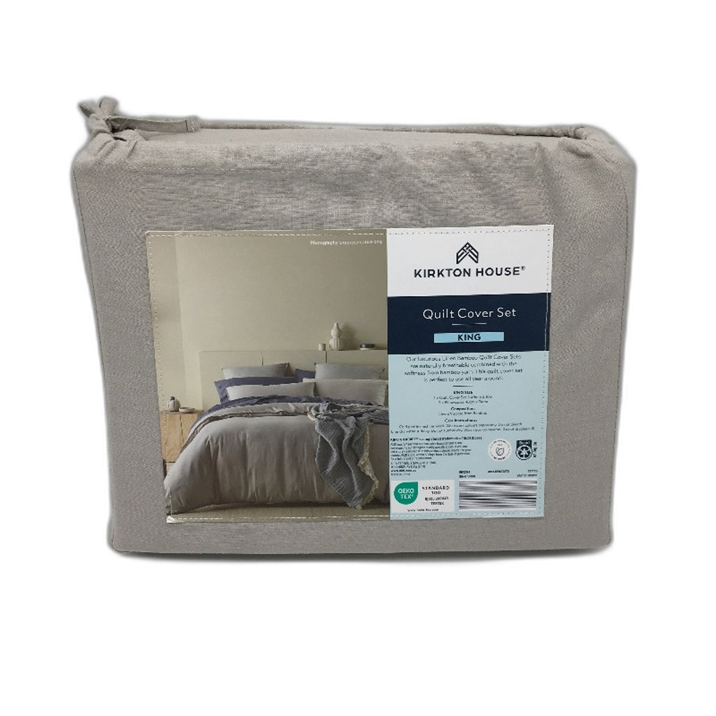 - Kirkton House Linen Bamboo Quilt Cover Set Silver Cloud Light Grey KING NEW