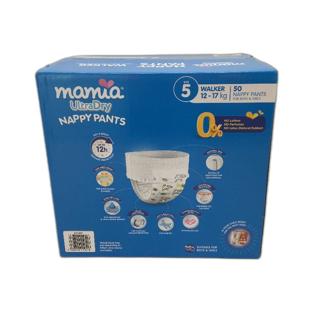- Mamia Ultra Dry Nappy Pants 50 Pack Walker Size 5 12-17kg Boys & Girls NEW