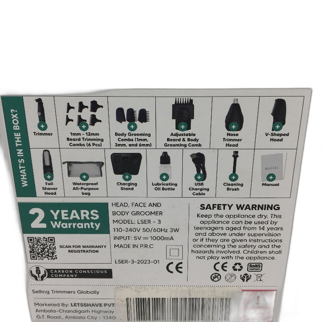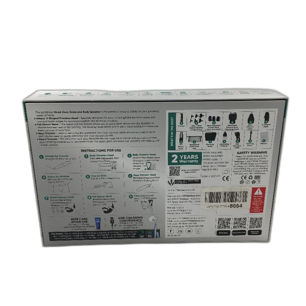 Demo product in box, packaging was opened for inspection. Tested to turn on but cannot be tested further. Item has some signs of demo use with slight scratches but blades are clean. Attachments came in box pre-lubricated.