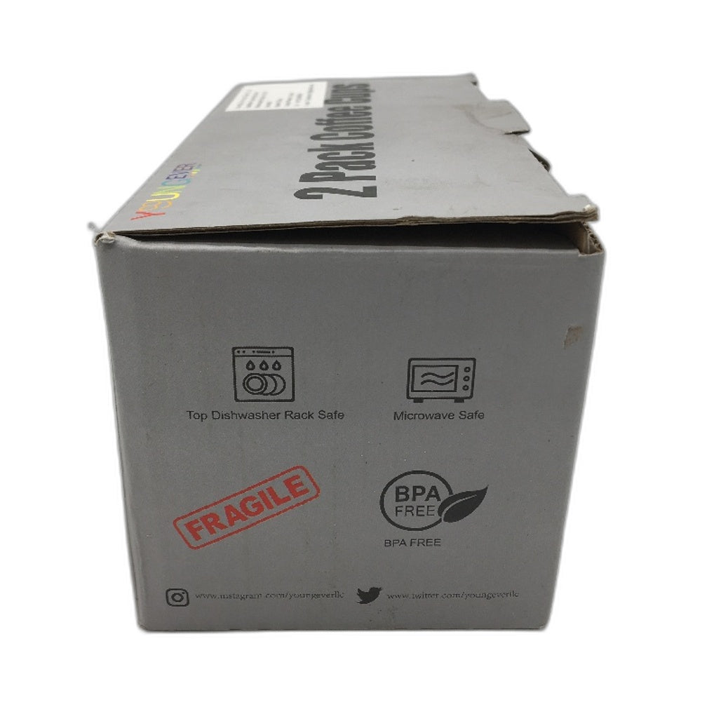 New in box, packaging was opened for inspection. Cups have sticker residue on bottom.