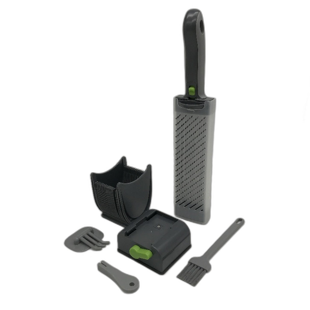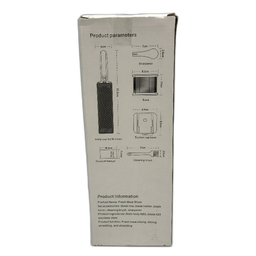 New in box, packaging was opened for inspection. Single base prong bent, blades slightly dirty.