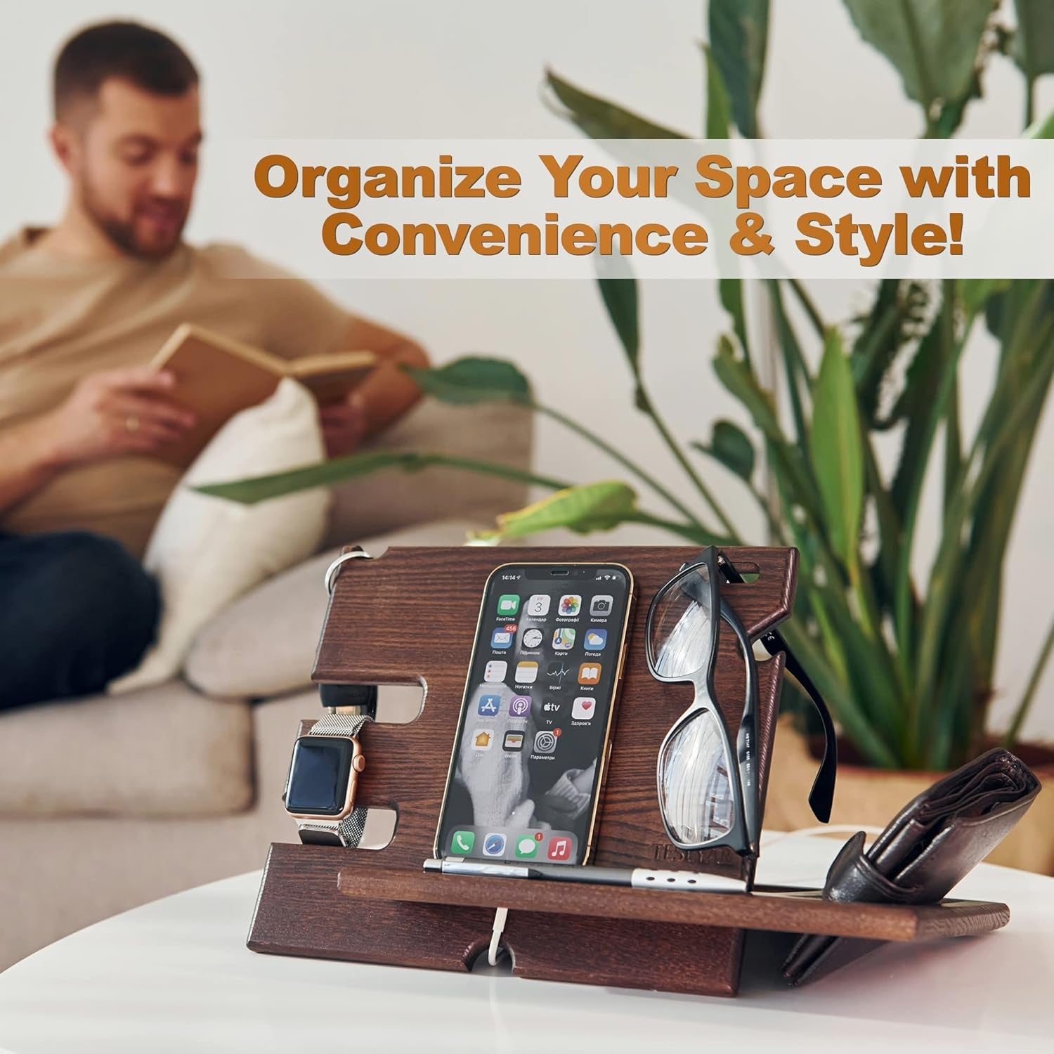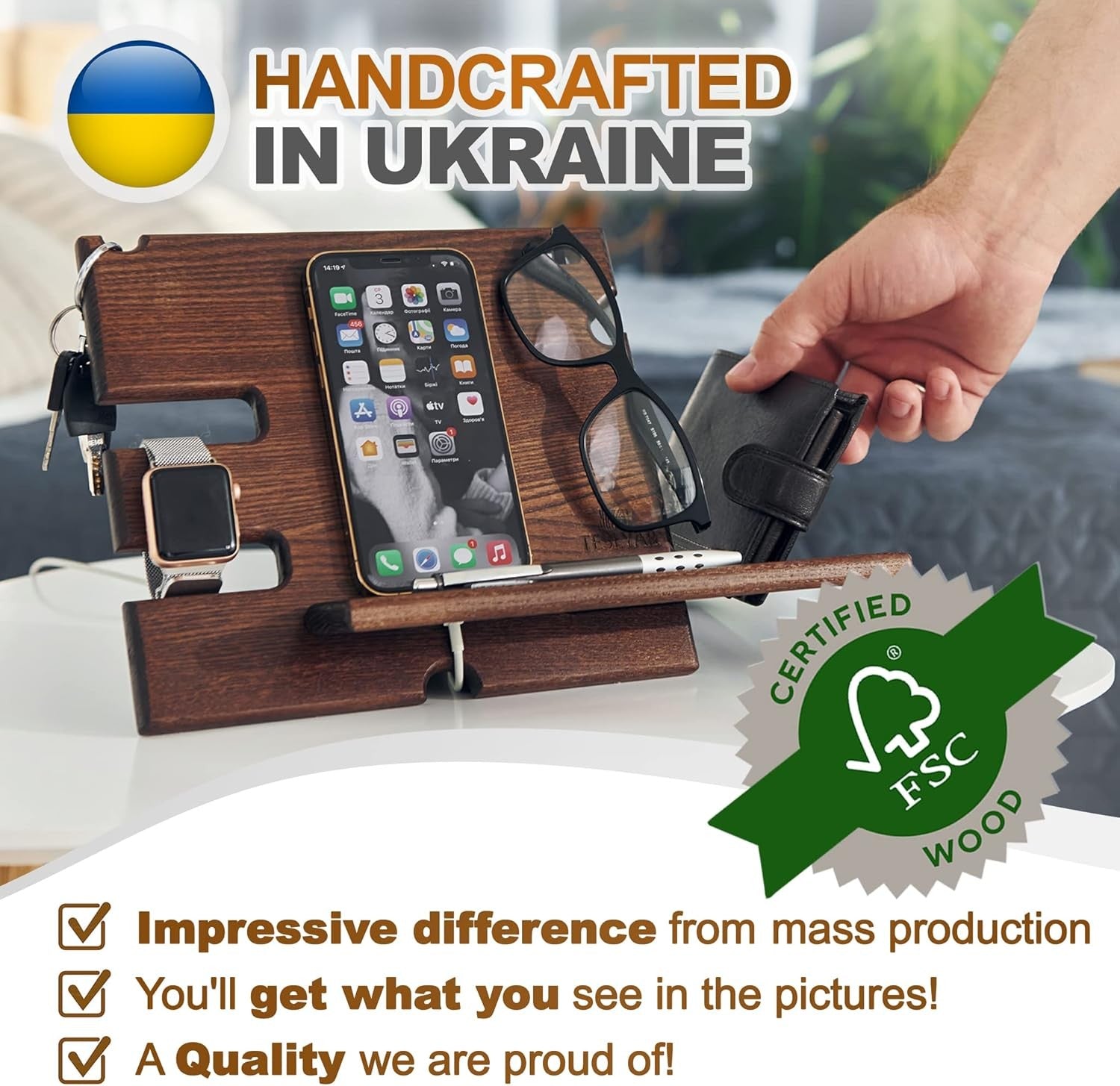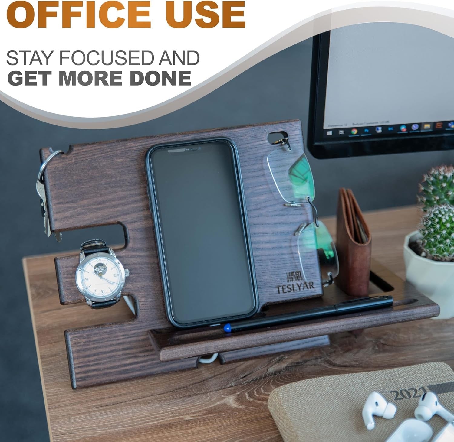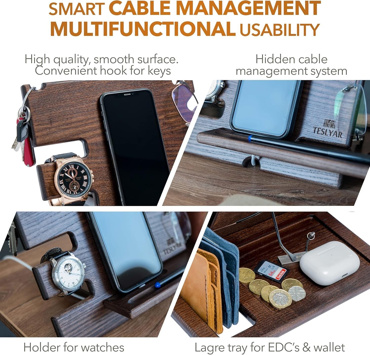- Teslyar PRVAR Wood Phone Docking Station and Accessories Holder Stand NEW